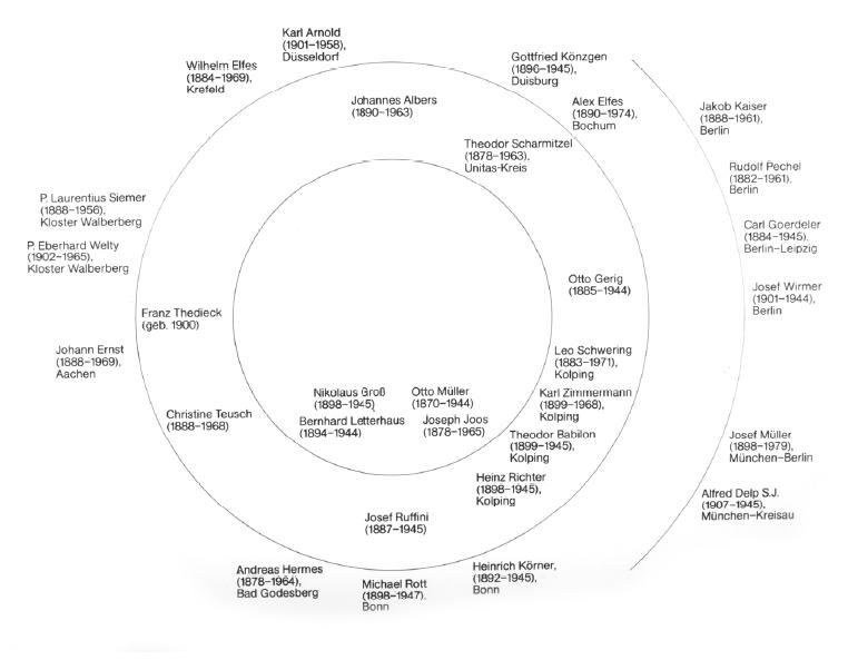 Im Widerstand fanden Katholiken und Protestanten zusammen, die sich bis 1933 in der Zentrumspartei beziehungsweise in der DNVP, der DVP und der DDP engagiert hatten. Nach dem Zweiten Weltkrieg gründeten sie als „Christliche Demokraten“ die CDU.