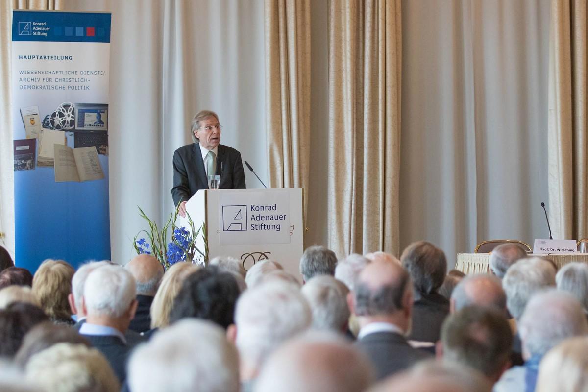 Helmut Kohls Israelbild als „Historisches Erbe und politische Verpflichtung“ widmete sich anschließend der Direktor des Instituts für Zeitgeschichte München/Berlin, Prof. Dr. Andreas Wirsching. Trotz der weltgeschichtlichen Veränderungen in seiner sechzehnjährigen Amtszeit als Kanzler sei die Israelpolitik Kohls, argumentierte Wirsching, von einer weitgehend konsistenten Haltung geprägt gewesen. Diese habe sich aus vier Grundlagen zusammengesetzt. Erstens sei Kohls „emotional unterlegte“ Empathie mit den Opfern des Nationalsozialismus zu betonen, aus dieser habe sich seine Position der Verantwortungsübernahme und der uneingeschränkten Solidarität mit Israel abgeleitet. Zweitens: Pauschale Urteile über die Haltung der Deutschen in den Jahren des „Dritten Reiches“, wie die Annahme einer „Kollektivschuld“ habe der Kanzler stets abgelehnt. Stattdessen habe Kohl regelmäßig auf den Widerstand des „Anderen Deutschland“ und den erfolgreichen Neuaufbau der Demokratie nach 1945 verwiesen. Realpolitisch gesehen konnte er damit, so der dritte Punkt Wirschings, seiner Regierung Handlungsspielräume, insbesondere gegenüber den arabischen Staaten, verschaffen. Viertens: Kohls Position des „Sowohl als Auch“ – Solidarität mit Israel, gleichzeitig aber auch freundschaftliche Beziehungen zu den arabischen Staaten – präge die deutsche Außenpolitik bis heute, sei dabei aber „nicht ohne Brisanz“. In den 1990er Jahren, einer Zeit des besonders erfolgreichen Ausbaus der deutsch-israelischen Kontakte im politischen wie im Bereich der Zivilgesellschaft, sei die Politik des „Sowohl als Auch“ durch den Nahost-Friedensprozess erleichtert worden.