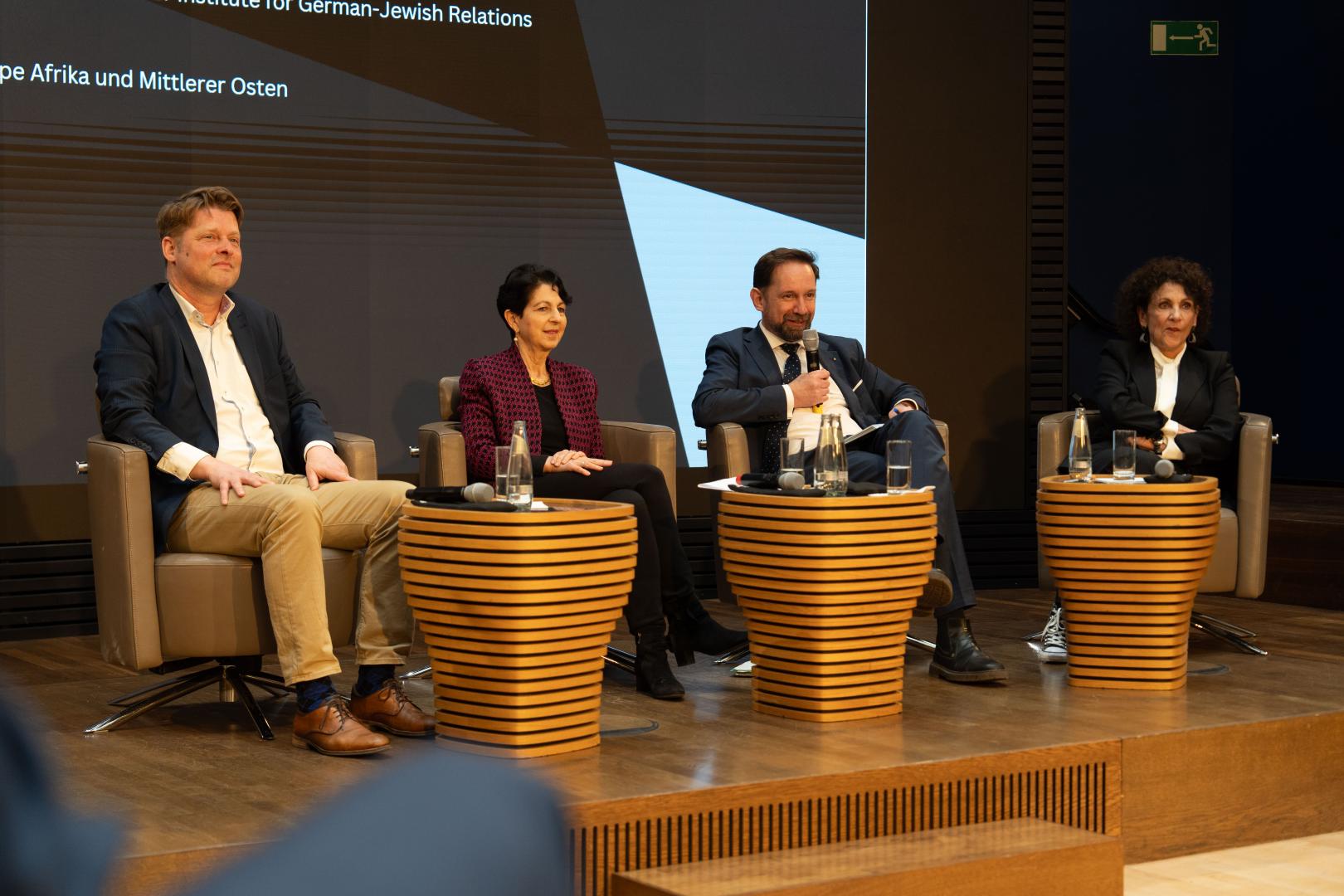 In der anschließenden Podiumsdiskussion ordneten Halina Hildebrand zusammen mit der Journalistin und Gesellschafterin des Tikvah Institut, Deidre Berger, und dem renommierten Islamwissenschaftler, Nahost- und Terrorismusforscher bei der Stiftung Wissenschaft und Politik (SWP), Dr. Guido Steinberg, die aktuelle Situation ein. Moderiert wurde das Gespräch von Dr. Michael Borchard, Leiter Wissenschaftliche Dienste / Archiv für Christlich-Demokratische Politik der Konrad-Adenauer-Stiftung und ehemaliger Leiter des Büros der Konrad-Adenauer-Stiftung in Israel.