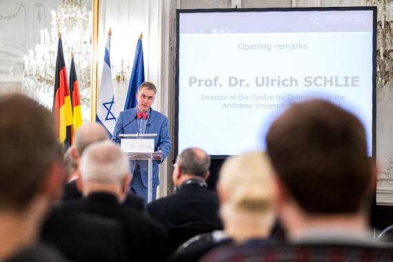 Frank Spengler, a Konrad-Adenauer-Stiftung magyarországi képviseletvezetője nyitó szavaiban Németország Izraellel szembeni történelmi felelősségét hangsúlyozta azért, hogy a két ország jövője szorosan összefonódjon. Az izraeli nagykövet különösen az ország stratégiai elhelyezkedésére tért ki beszédében. Ehhez kapcsolódóan emelte ki a globális geopolitikai változások tekintetében ki Izrael Állam egyre növekvő politikai szerepét, kiváltképpen az arab országok körében. „Izrael a kulcs a Közel-kelet stabilitásához” – mondta Amrani. A nagykövet ezáltal hangsúlyozta az ország kiemelkedő biztonságpolitikai jelentőségét az Európai Unióra vonatkozóan. Izrael az utóbbi években jentősen hozzájárult az EU biztonságához. „Izrael Európa Stabilitásának horgonya” – különösen a bevándorlás tekintetében, mondta az izraeli nagykövet.