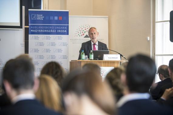 Schőberl Márton, a Külügyi és Külgazdasági Intézet igazgatójának és Frank Spengler, Konrad-Adenauer-Stiftung magyarországi képviseletvezetőjének köszöntője után Dr. Hende Csaba, az Országgyűlés törvényalkotási bizottságának elnöke a két ország közötti kölcsönös függésről tért ki nyitóbeszédében. Németország politikai és gazdasági stabilitása Magyarország társadalmi fejlődése tekintetében nagy jelentőséggel bír.