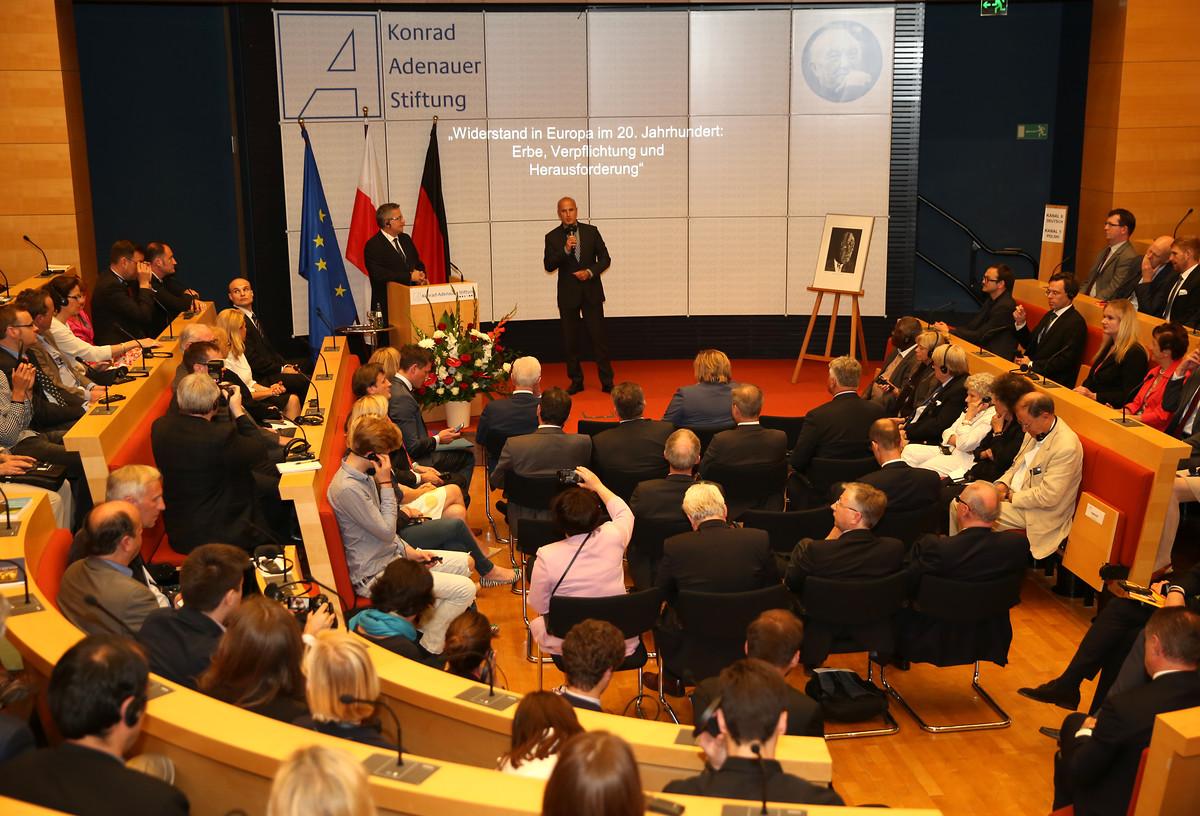 Komorowski, der anlässlich des einundsiebzigsten Jahrestages des Attentats auf Hitler in der Akademie der Konrad-Adenauer-Stiftung in Berlin sprach, erinnerte an den langen Kampf um die Freiheit in Europa. Aus dem Mut der Gruppe um Claus Schenk Graf von Stauffenberg, die ihren Einsatz für Recht und Gerechtigkeit mit dem Leben bezahlten, erwachse die Verpflichtung, alles zu tun, damit „wir uns in Europa und der Welt sowie in den gegenseitigen Beziehungen sicher fühlen“. Freiheit als Verantwortung wahrzunehmen, das müsse die Lektion für die Generation der Töchter und Söhne der Widerstandskämpfer sein.