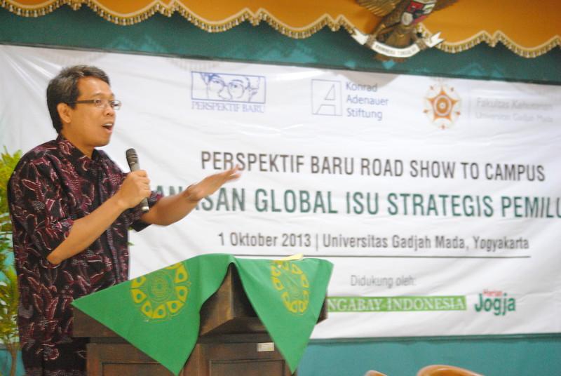 Dr. Satyawan Pudyatmoko, Dekan Fakultas Kehutanan Universitas Gadjah Mada merasa gembira karena kehadiran lebih dari 200 tamu undangan dalam acara yang diselenggarakan bersama oleh YPB, KAS Indonesia dan fakultasnya itu. Dalam pidato pembukaan acara ini, ia menekankan bahwa isu seputar perlindungan iklim, cuaca dan lingkungan hidup perlu lebih diperhatikan oleh mahasiswa karena generasi yang akan datanglah yang akan merasakan efek dari politik iklim dan cuaca di Indonesia saat ini.