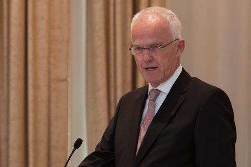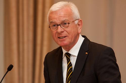 Nach der Kranzniederlegung auf dem Waldfriedhof in Rhöndorf unter Anwesenheit vieler Verwandte, Wegbegleiter, Politiker und Freunde des ersten Bundeskanzlers, fanden sich rund 320 Gäste im Steigenberger Grandhotel Petersberg ein. Unter dem Titel „Aus der Katastrophe der Kriege zur europäischen Einigung“ begrüßte zunächst der Vorsitzende der Konrad-Adenauer-Stiftung, Dr. Hans-Gert Pöttering MdEP, die Gäste und ging auf die Vielzahl der historischen Jubiläen ein, die 2014 bevorstehen. Er gedachte dabei auch der Gründungsväter Europas, gab aber gleichzeitig zu bedenken, dass wir noch nicht am Ziel seien, die Einheit Europas bleibe gefährdet, doch das Erreichte solle uns den Mut und die Kraft geben, daran zu glauben, dass Europa auch in Zukunft erfolgreich sein wird.