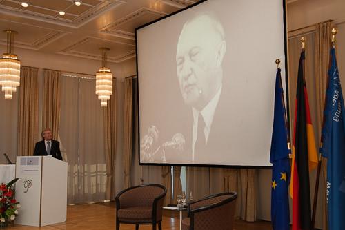 Der Historiker und Publizist Prof. Dr. Paul Nolte, Professor am Friedrich-Meinecke-Institut der Freien Universität Berlin, gab in seinem Vortrag einen Überblick über die vergangenen 100 Jahre und fragte, ob wir heute vor einer ähnlichen Situation stehen, wie unsere Großväter oder Urgroßväter vor 100 Jahren. Seiner Meinung nach verbreiten die vielen Buchveröffentlichungen und Erinnerungen, die uns seit einigen Monaten auf das Jubiläumsjahr 2014 vorbereiten eine eher mahnende und düstere Stimmung und werfen gleichzeitig die Frage auf, ob die Verfassung und Zukunftsfähigkeit Europas stabil genug ist, um eine Wiederholung von 1914 oder einen Rückfall in nationale Alleingänge und den Verlust von Wohlstand und Sicherheit zu verhindern. Statt ständiger Mahnungen und Kassandrarufe sei es hilfreicher einen Blick zurück zu werfen und sich an den „tatkräftigen und lebensnahen, zugleich skeptischen und selbstbewussten Optimismus, aus dem heraus Konrad Adenauer ein demokratisches Deutschland und ein vereintes Europa gestaltet hat“ zu erinnern.