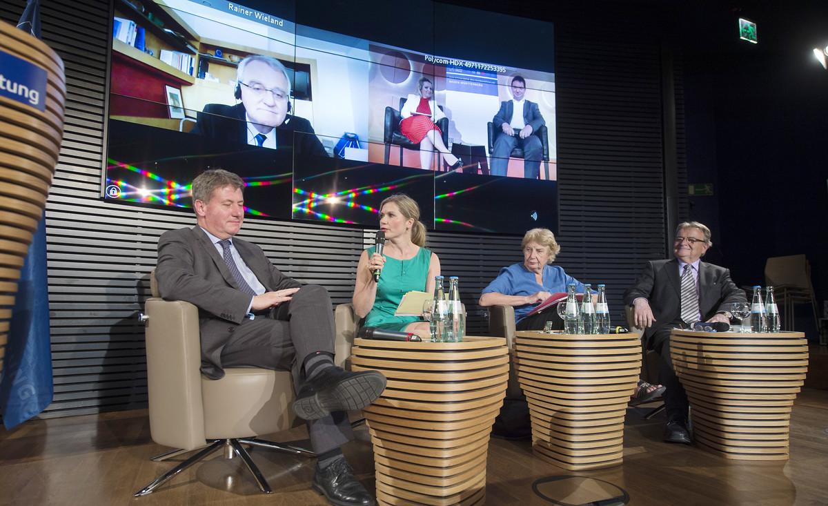„Europa als Wertegemeinschaft ist gefordert“, stellt Andreas Kleine-Kraneburg, Leiter der Akademie der Konrad-Adenauer-Stiftung, angesichts der vielfältigen Herausforderungen in Europa – sei es Flüchtlingskrise, Schuldenkrise, oder drohender Brexit - in seiner Begrüßungsrede fest. Doch besteht überhaupt noch Einigkeit darüber, wofür Europa heute steht? „Wir haben eher zu wenig Europa“, sagt der Vizepräsident des Europäischen Parlaments, der dem Adenauer-Lab direkt aus Straßburg zugeschaltet ist. „Deutschland kann es nicht gut gehen, wenn es Europa schlecht geht“, so Wieland weiter. In der Flüchtlingskrise hätten die europäischen Länder bereits vor einigen Jahren eine gemeinsame Strategie erarbeiten müssen. Stattdessen wäre viel Zeit verschenkt worden. Gergely Pröhle, ehemaliger Botschafter Ungarns in Deutschland und heute stellvertretender Staatssekretär für Internationale und EU-Angelegenheiten im Ministerium für Gesellschaftliche Ressourcen Ungarns, steht der Forderung nach „mehr Europa“ skeptisch gegenüber. Er stört sich daran, dass die EU Ländern per Quote vorschreiben will, wie viele Flüchtlinge aufgenommen werden müssen. „Dieses Quotensystem hat nichts mit Solidarität zu tun“, so Pröhle. Die EU-Staaten sollten vielmehr gemeinsam Lösungen in den Nachbarstaaten der Krisenländer finden und finanzielle Unterstützung leisten. „Das Flüchtlingsthema ist kein europäisches, sondern ein weltweites Thema“, merkt Professor Barbara John an. Europa allein könne die Herausforderungen nicht bewältigen. Was wir brauchen, sei ein vollkommen neues Schutz- und Hilfesystem. Einzelne Länder Europas für ihre Haltung in der Flüchtlingskrise an den Pranger zu stellen, davon hält Barbara John jedoch nichts. „Mit dem Finger auf den Partner zeigen, kann keine Ehe aushalten, auch keine europäische“, so John.