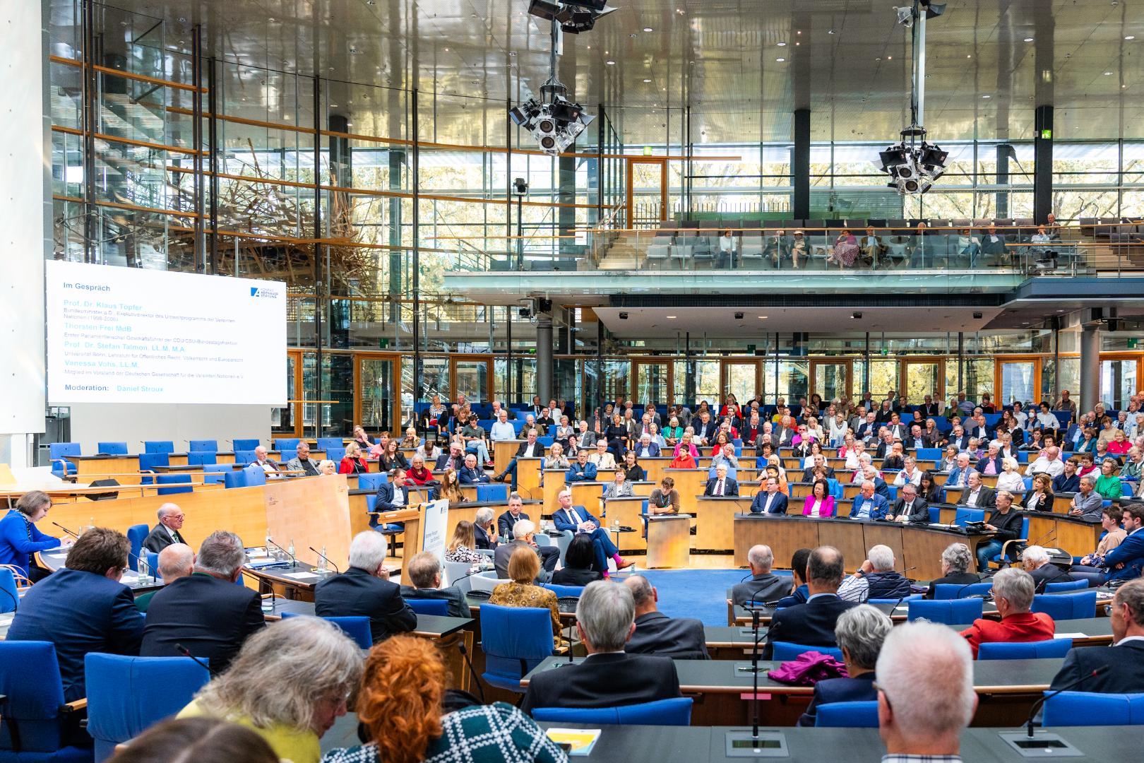 Wegmarken der deutschen und europäischen Geschichte sowie internationale Weichenstellungen geben den Rahmen für die Feierstunde der Konrad-Adenauer-Stiftung am Tag der Deutschen Einheit vor. Seit 2003 und damit seit 20 Jahren lädt die Stiftung zunächst ins Wasserwerk, nunmehr in den von Günter Behnisch gestalteten Plenarsaal zum Diskutieren und Nachdenken ein, wie Norbert Lammert bemerkte. Der Vorsitzende der Konrad-Adenauer-Stiftung begrüßte rund 700 Gäste, um anlässlich des Beitritts beider deutscher Staaten zu den Vereinten Nationen am 18. September 1973 über die Rolle und Wirkung dieses Zusammenschlusses von 193 Staaten zu sprechen.