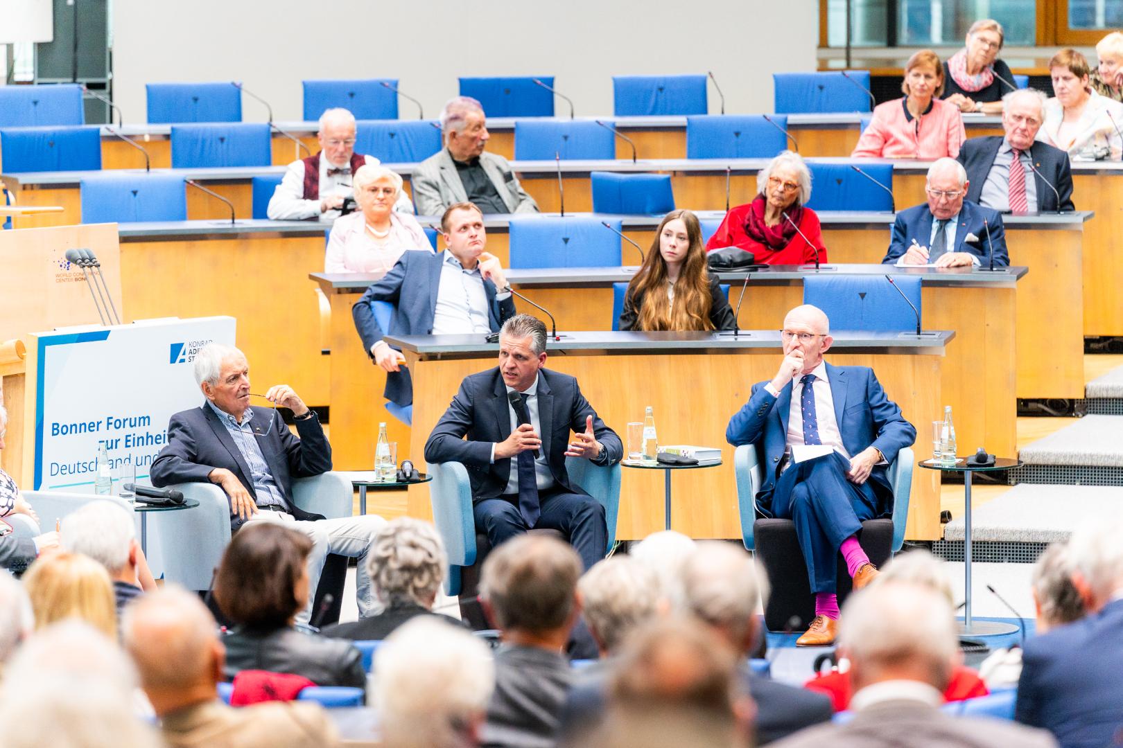 Die Zeit reiche natürlich nicht aus, um ein solch komplexes Thema abschließend zu behandeln, erklärte Ulrike Hospes, Landesbeauftragte der Konrad-Adenauer-Stiftung in Nordrhein-Westfalen, in ihrem Schlusswort. Sie dankte allen Podiumsteilnehmern für die engagierte Diskussion, in der verschiedene Sichtweisen, Einschätzungen und Interessen ihren Platz fanden. Insbesondere am Tag der Deutschen Einheit mache es sich die Konrad-Adenauer-Stiftung zur Aufgabe, daran zu erinnern, dass die Welt nicht stehen bleibt, dass auch Überwindungen von Diktaturen nicht die Lebensfähigkeit von Demokratien sicherten. Misserfolge dürften aber nicht dazu führen, Ideale für falsch zu halten. Jede Generation müsse sich ihren Aufgaben stellen.