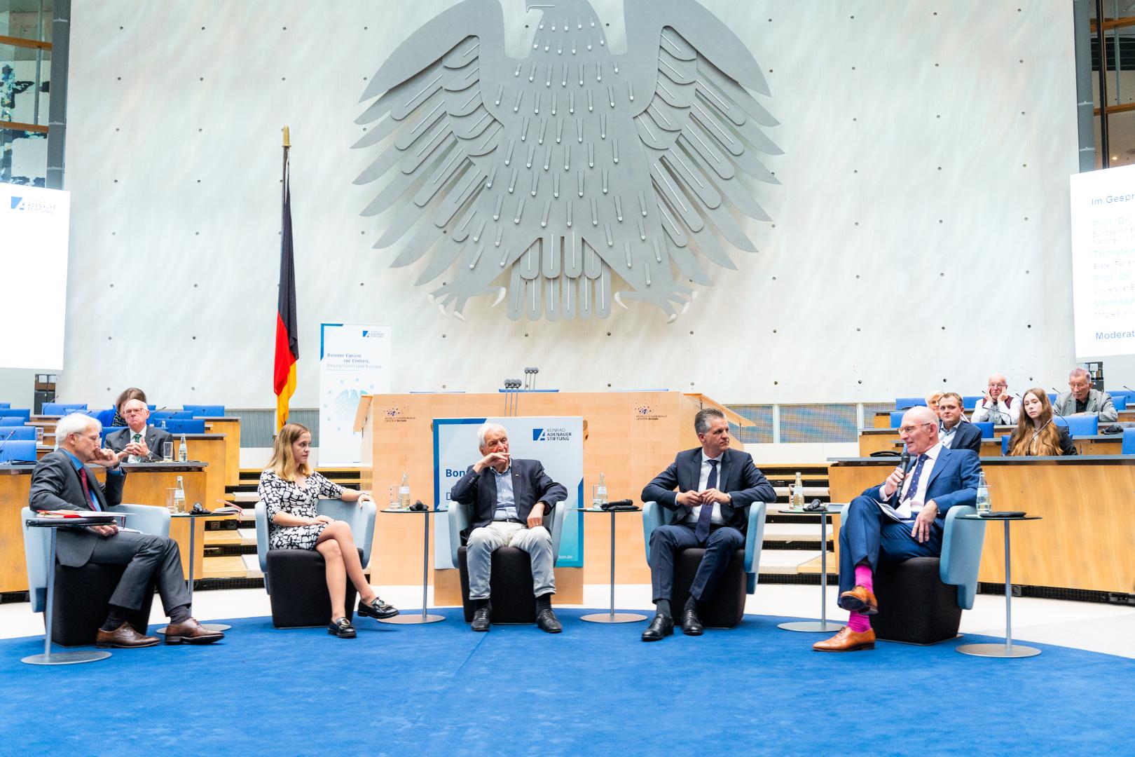 Gern zurückgekehrt an seine alte Wirkungsstätte als Bundesminister war Klaus Töpfer, u.a. ehemaliger Exekutivdirektor des Umweltprogramms der Vereinten Nationen (UNEP). In seinem Impuls sorgte er sich um die Handlungsfähigkeit der Vereinten Nationen und regte an, nicht punktuell Anpassungen vorzunehmen, sondern strukturelle Veränderungen herbeizuführen, beispielsweise parallel zum blockierten Sicherheitsrat einen Weltrat für Entwicklung aufzubauen, der die Umsetzung der Nachhaltigkeitsziele zum Ziel habe. Und damit trafen Politik und Wissenschaft aufeinander: Den Rahmen des Möglichen und juristisch Vorgegebenen skizzierte Stefan Talmon, Inhaber des Lehrstuhls für Öffentliches Recht, Völkerrecht und Europarecht an der Universität Bonn. Jede größere strukturelle Veränderung bedürfe einer Anpassung der Verträge; zwei Drittel der Mitgliedstaaten müssten einer Veränderung der UN-Charta zustimmen – also 130 Staaten, darunter auch die fünf ständigen Mitglieder des Sicherheitsrates. Eine wegen des drohenden Macht- und Bedeutungsverlusts sehr unwahrscheinliche Option. Alle seit 1979 laufenden Reformbemühungen seien an Partikularinteressen gescheitert. Der Weltsicherheitsrat und das derzeitige UN-System seien derzeit unreformierbar.