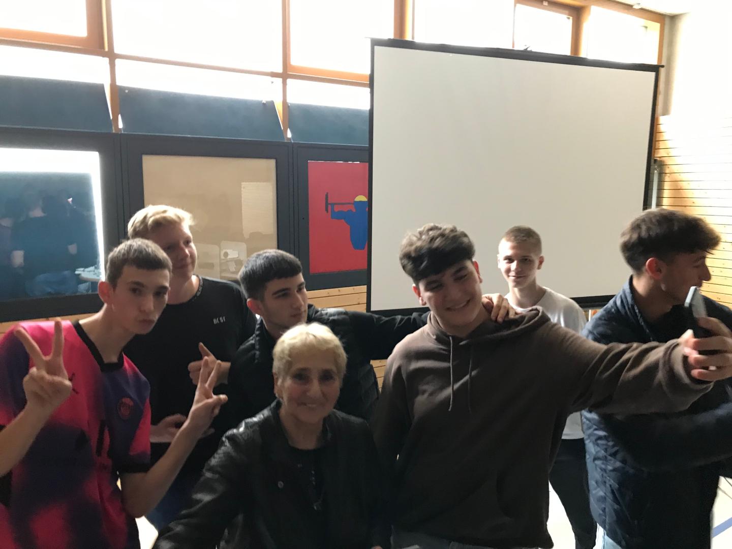 Kurz vor 13 Uhr am Donnerstagmittag. Hinter den rund 100 Schülerinnen und Schülern der Bad Säckinger Werner-Krichhofer-Realschule liegen anderthalb Stunden mit Erika Rosenberg. Von ihrem ausgefallenen Zug weiß sie zu diesem Zeitpunkt noch nichts. Sie hat ihr Buch noch nicht zu, das letzte Wort gerade zu Ende gesprochen und sich bedankt, da stürmen einzelne Schüler vor und fragen sie nach einem Selfie. Am Ende stehen mehr als 30 junge Menschen um die bewegte Argentinierin, machen einzelne Fotos mit ihr und bestehen auf Gruppenfotos mit ihren Handys. Dem Verfasser des Artikels werden nach und nach diverse Mobiltelefone gereicht – sie werden schon ihren Weg zurück in die richtigen Hände finden. Ein mehr als würdiger Abschluss.