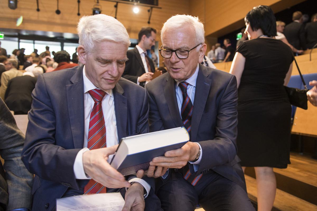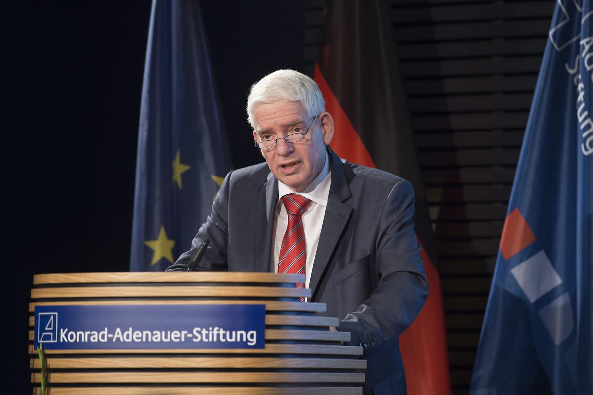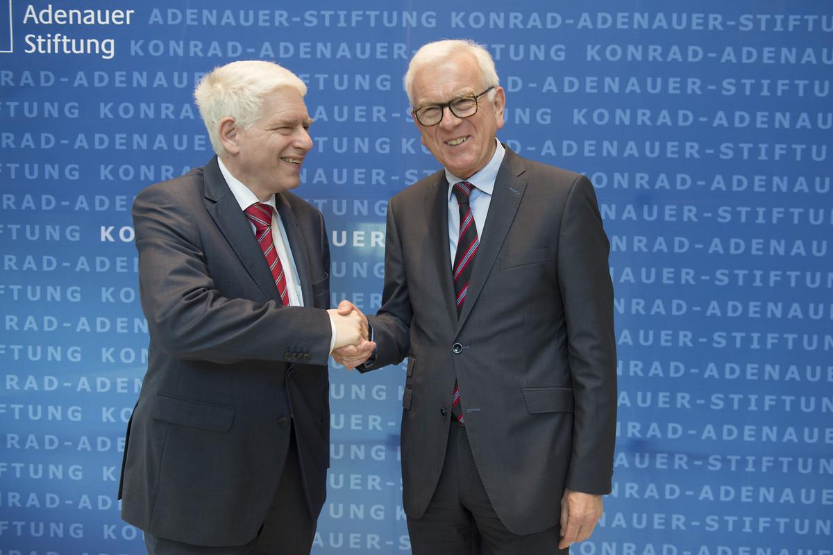 Schuster war vom Vorsitzenden der Konrad-Adenauer-Stiftung, Dr. Hans-Gert Pöttering, begrüßt worden. Auch er hob in seiner Ansprache auf die Bedeutung der Wertevermittlung an die Flüchtlinge ab. Er betonte: „Wenn es Menschen in Deutschland gibt, die die Menschenwürde nicht achten, dann ist er unser Gegner. Es ist unsere gemeinsame Aufgabe, die Würde jedes einzelnen Menschen mit Entschlossenheit zu verteidigen.“