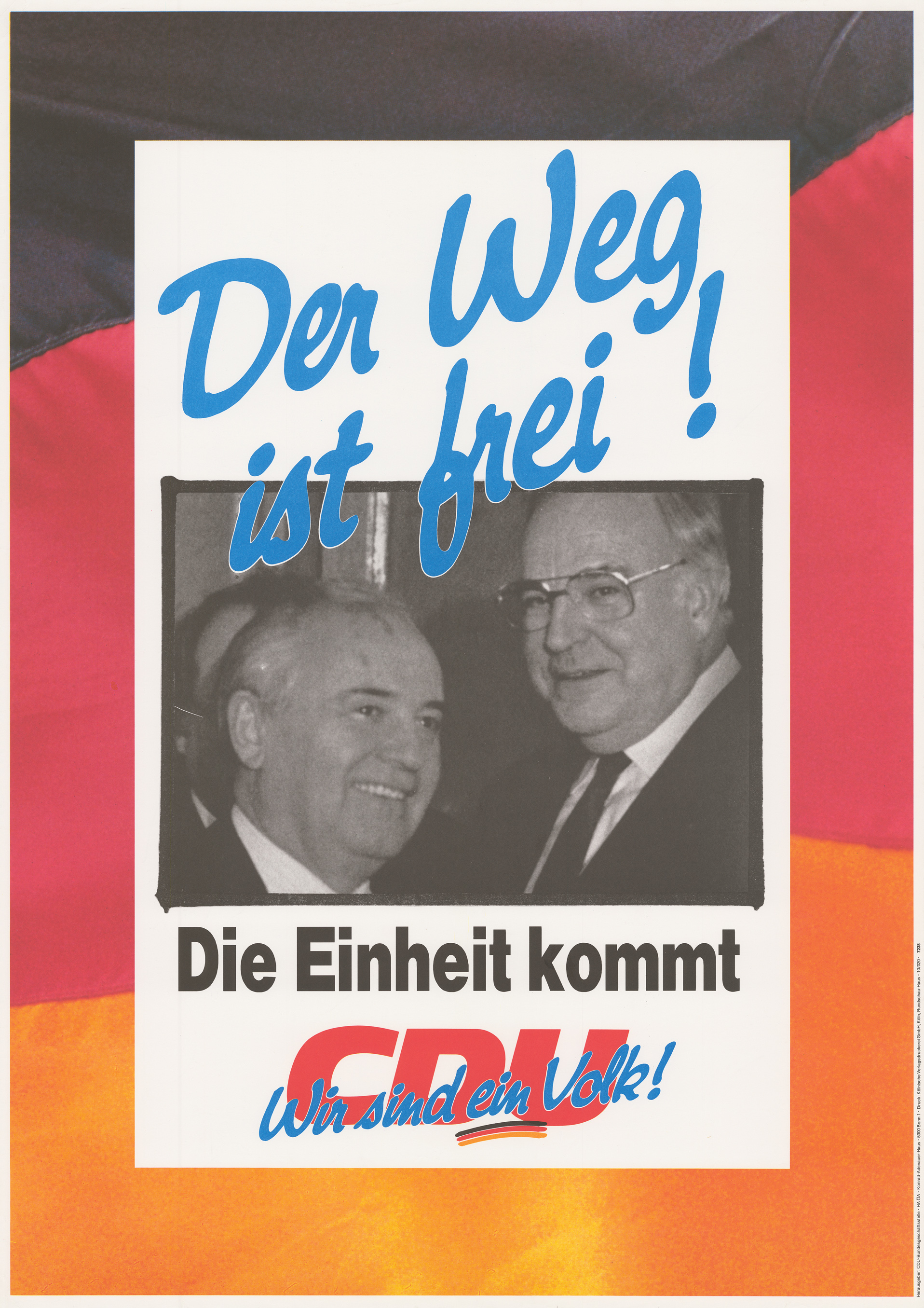 Die Union hielt seit ihrer Gründung am Ziel der deutschen Einheit fest. Dabei galt allerdings, dass die politische Freiheit nicht der Einheit geopfert werden könne. Helmut Kohl behielt, auch als in den 1980er-Jahren die SPD die Zweistaatlichkeit akzeptiert hatte, die Wiedervereinigung als Staatsziel bei und konnte sie durch geschicktes Taktieren 1989/90 erreichen.