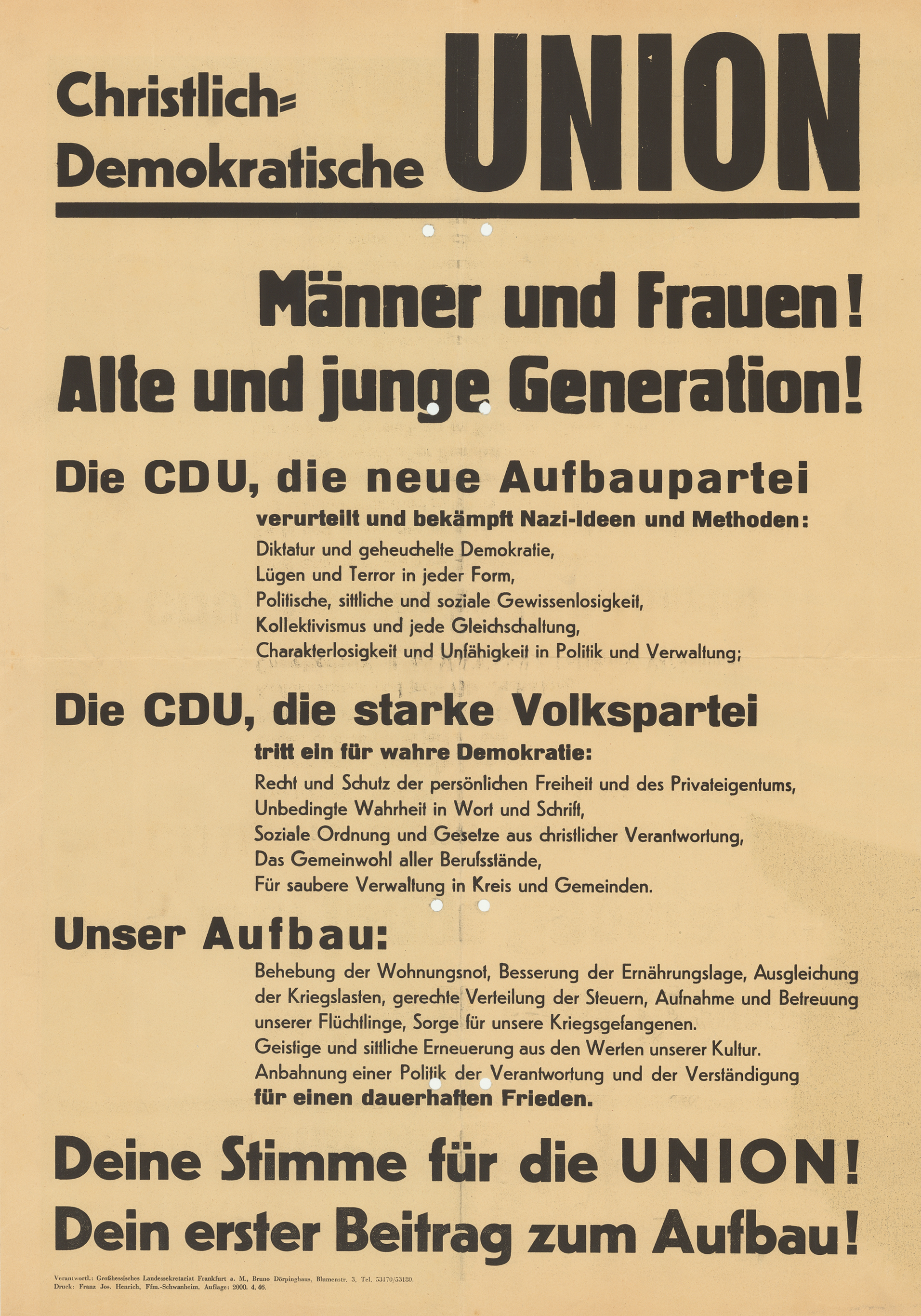 Die ideengeschichtliche Entwicklung der christlichen Demokratie seit dem 19. Jahrhundert wird hier mit Blick auf den deutschen Geschehensraum nachgezeichnet. Während bei den Katholiken mit dem Zentrum eine kirchennahe Partei entstand, war auf evangelischer Seite kein entsprechend einflussreiches Pendant vorhanden. Erst unter dem Eindruck der NS-Diktatur gelang es, mit der Gründung der Union 1945 die konfessionellen Schranken zu überwinden.
