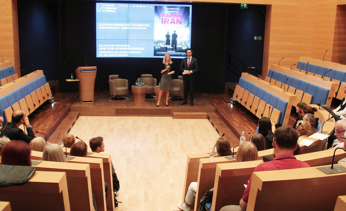 Im anschließenden Filmgespräch legte Regisseurin Susanne Regina Meures dar, mit welchen Risiken die Dreharbeiten verbunden waren. Zu der im Film mehrfach aufgeworfenen Frage, ob es unter Staatspräsident Rohani nicht „besser“ geworden sei, erklärte der Iran-Experte der Deutschen Gesellschaft für Auswärtige Politik, Dr. Ali Fathollah-Nejad, dass von einer Liberalisierung gerade in Bezug auf die gesellschaftlichen Restriktionen nicht die Rede sein könne. Mit Blick darauf, dass die musikalische Leidenschaft der DJs keinerlei politische Intentionen habe, wurde auch die Frage diskutiert, inwieweit die Jugend am politischen Prozess partizipieren könne. Vor dem Hintergrund der anhaltenden Fluchtbewegung aus den Staaten des Nahen Ostens wurden schließlich die Zukunftsperspektiven der iranischen Jugend beleuchtet.