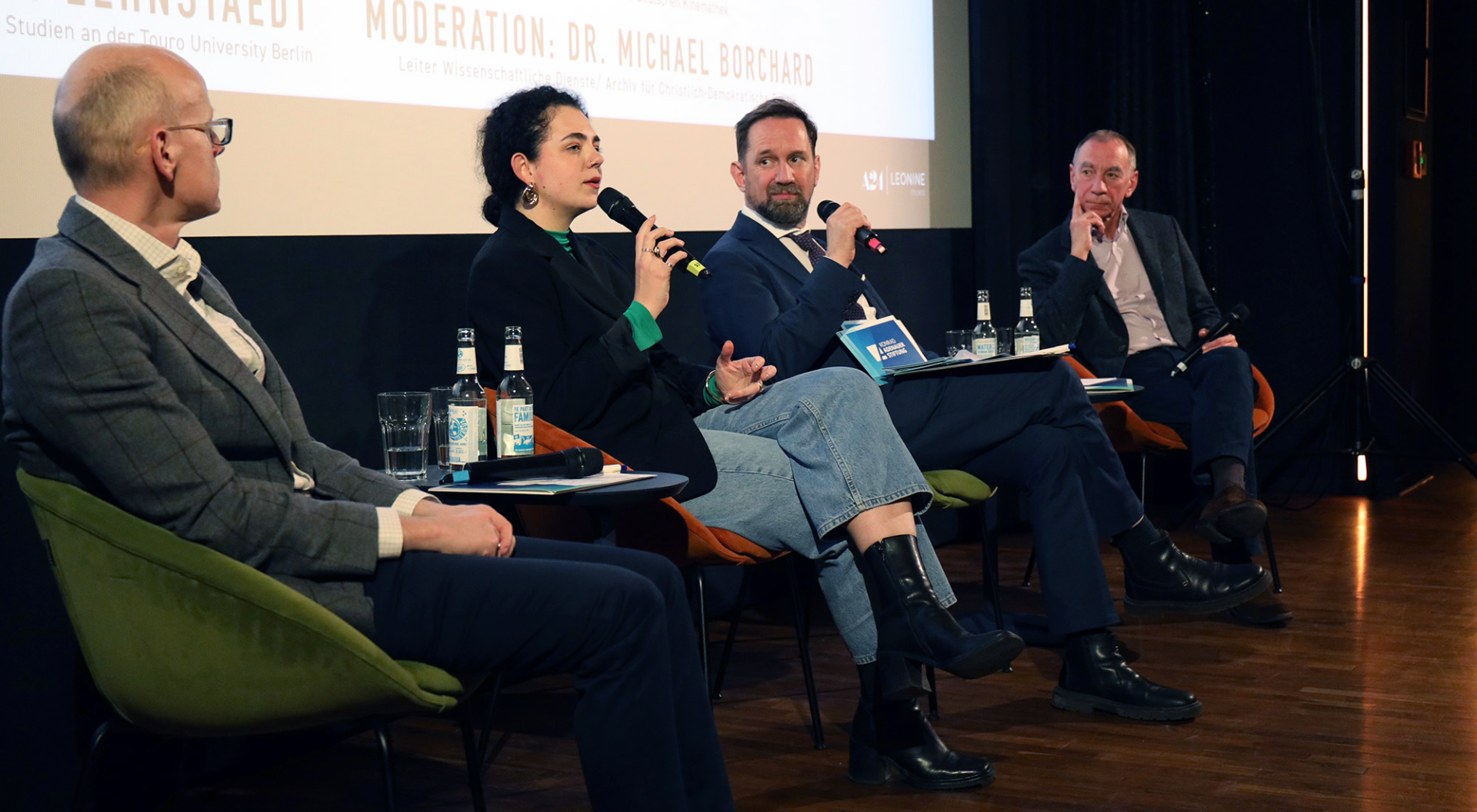 Im Anschluss an die Vorführung folgte – traditionsgemäß für die Zeithistorische Filmreihe – ein Nachgespräch, dieses Mal mit Hanna Veiler, Präsidentin der Jüdischen Studierendenunion Deutschlands, sowie Rainer Rother, Leiter der Deutschen Kinemathek und der Retrospektive der Berlinale, und Stephan Lehnstaedt, Professor für Holocaust-Studien und jüdische Studien an der Touro University Berlin. Moderiert wurde die Diskussion von Michael Borchard, Leiter Wissenschaftliche Dienste/Archiv für Christlich-Demokratische Politik der Konrad-Adenauer-Stiftung.