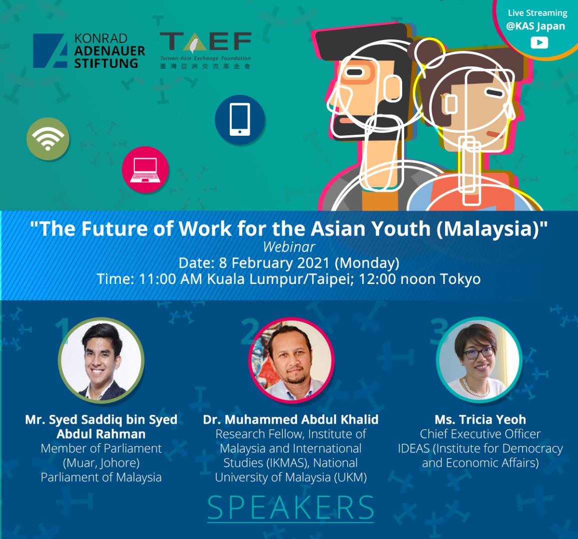The event was opened by Ms Cristita Marie Perez, Senior Program Manager of Regional Program Social Economic Policies Asia (SOPAS) and Ms Miriam Fischer, Country Representative, KAS Malaysia. The panellists of the session were Dr Muhammed Abdul Khalid, Research Fellow, Institute of Malaysia and International Studies (IKMAS) National University of Malaysia; Ms Tricia Yeoh, Chief Executive Officer, Institute for Democracy and Economic Affairs (IDEAS); and Mr Syed Saddiq bin Syed Abdul Rahman, Member of Parliament (Muar, Johore), Parliament of Malaysia. The session then ended with a closing remark by Dr Alan Hao Yang, Executive Director, TAEF. The moderator of the session was Mr Yuri Baral, TAEF Non-Resident Assistant Research Fellow.