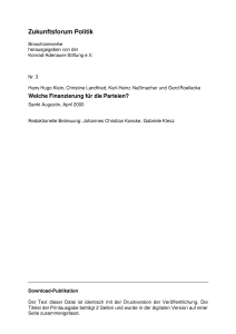 In diesem Heft sind Stellungnahmen der Wissenschaftler dokumentiert und die Ergebnisse der Diskussion zum Thema "Welche Finanzierung für die Parteien?" zusammengefaßt.