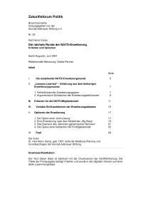 Das Papier analysiert Fragen, die auf dem NATO-Gipfeltreffen 2002 in Prag anstehen, und gibt konkrete Handlungsempfehlungen.