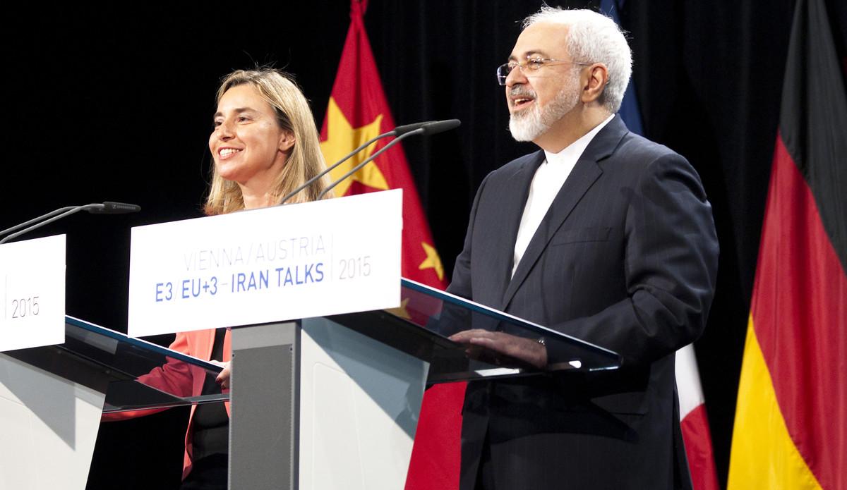 Federica Mogherini, Hohe Vertreterin der EU für Außen- und Sicherheitspolitik, und Irans Außenminister Mohammad Javad Zarif während einer Pressekonferenz zum Iranabkommen, 14. Juli 2015. | © UNIS Wien / Flickr / CC BY-NC-ND 2.0