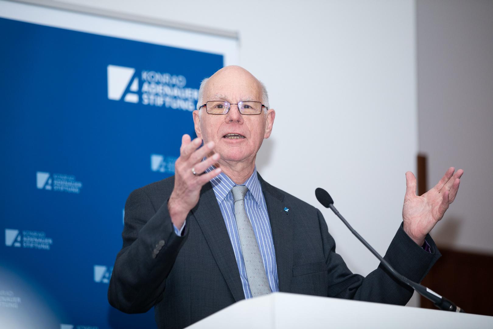 Mit Verweis auf die enorme politische Verantwortung eröffnete Dr. Peter Fischer-Bollin, Hauptabteilungsleiter bei der Konrad-Adenauer-Stiftung, den zweiten Tag der Konferenz.