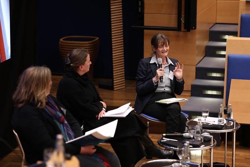 Die Europa- und Völkerrechtlerin Prof. Dr. Sigrid Boysen (Universität Hamburg) brachte neben dem Rechtsgüterschutz, die zusätzliche Frage nach der Verteilungsgerechtigkeit ein. Für diese Frage sehe sie keine Zuständigkeit bei den internationalen Gerichten. Die Gerichte könnten lediglich Blockaden der Politik überwinden. In diesem Zusammenhang wies Eicke auf die zusätzliche Schwierigkeit hin, dass es hierbei auch nicht nur um Verteilungsfragen innerhalb eines Staates gehe. Alle drei konstatierten schließlich den Dialog des EGMR mit nationalen und internationalen Gerichten als Hauptaufgabe des Gerichtshofes.