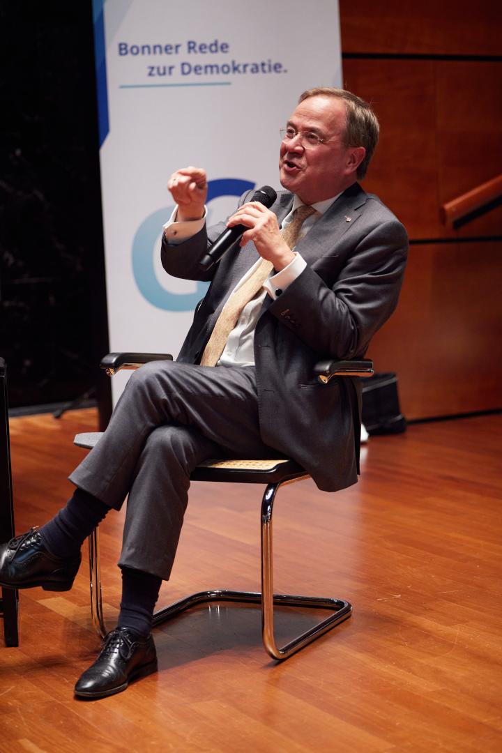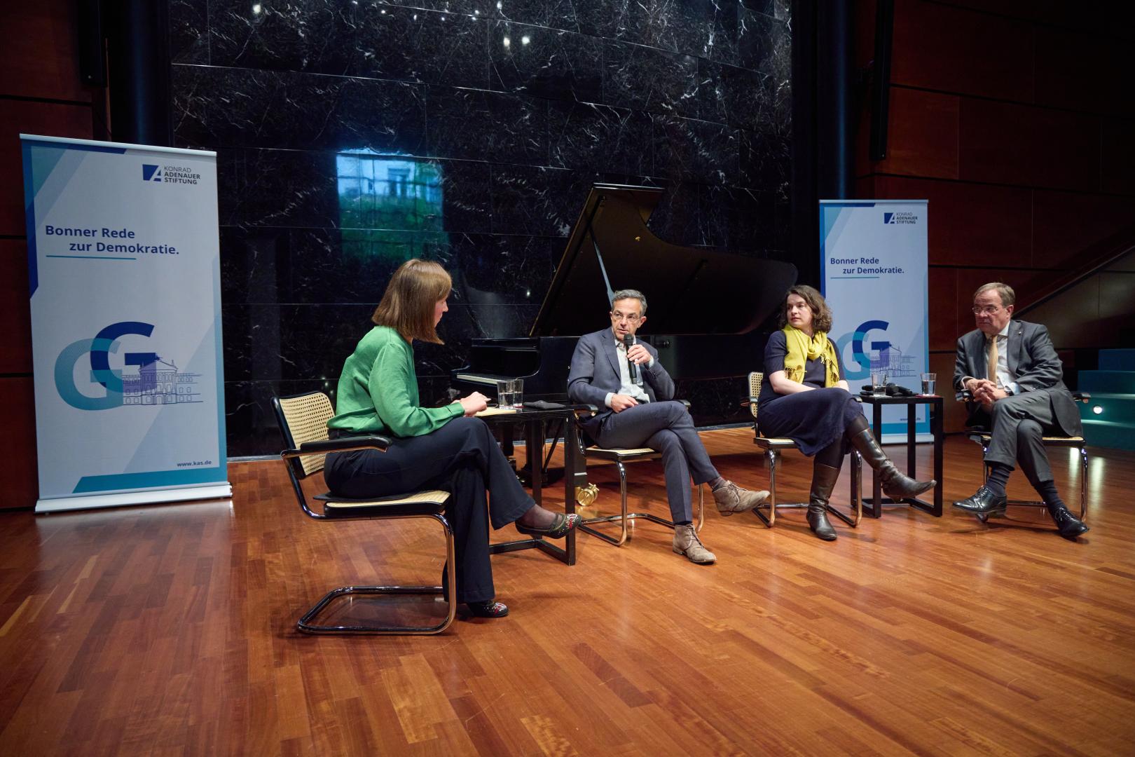 Navid Kermani stimmte in die Kritik am Westen ein. Er habe auch in Russland mit der Förderung des Kapitalismus Schaden angerichtet, erleide einen geopolitischen Niedergang und setze sich mit seinem Narrativ nicht mehr durch. Laschet sekundierte ihm und forderte eine neue Nachdenklichkeit über die zukünftige Rolle der EU, wenn möglicherweise die USA unter Trump eine nicht mehr so bereitwillige Schutzmacht des Westens seien.