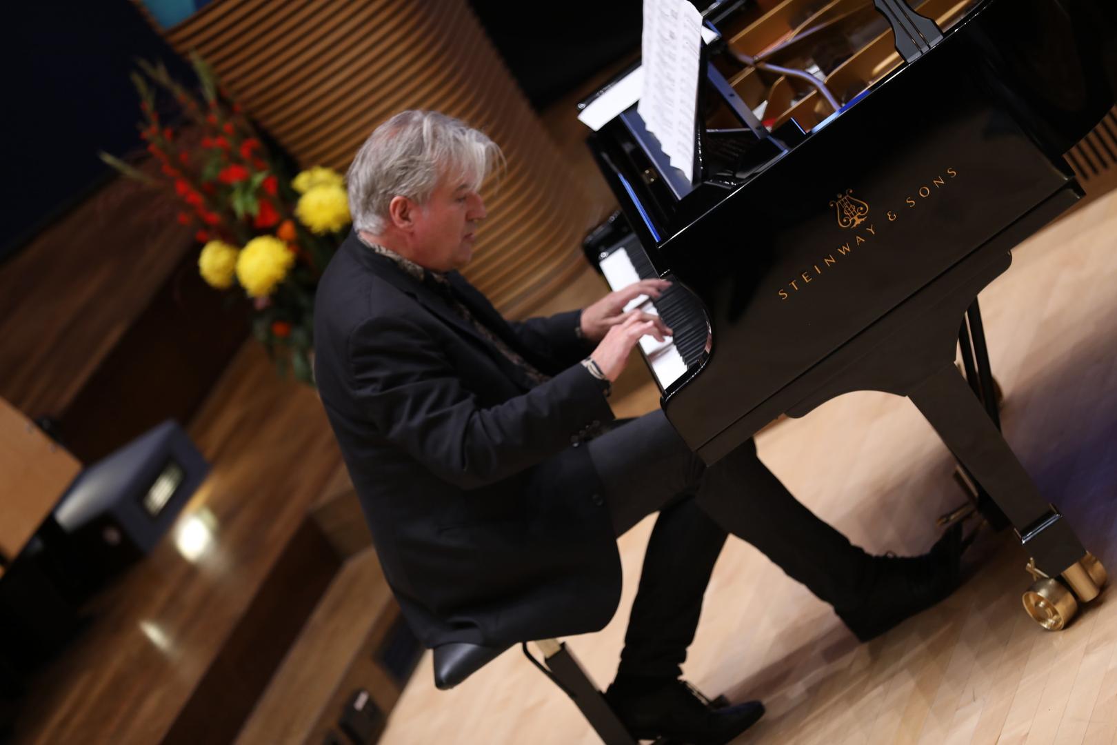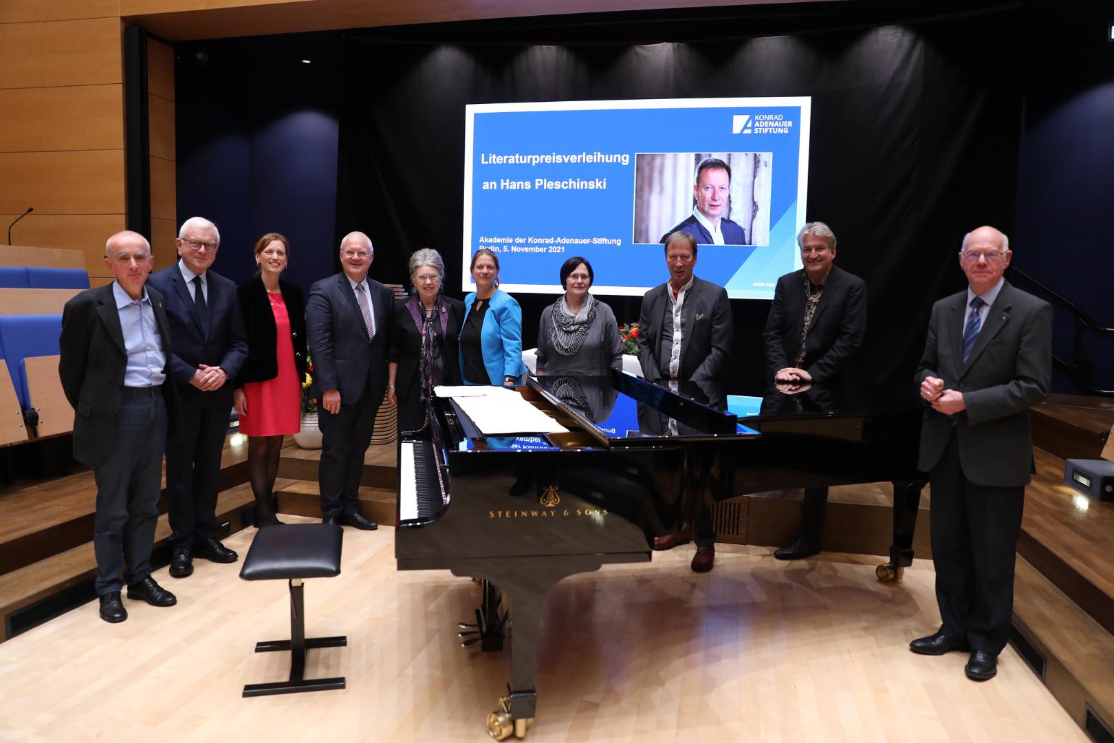 Eine musikalische Botschaft schließlich kam von Hans Lüdemann. Der ehemalige Stipendiat des Else-Heiliger-Fonds der KAS spielte als Premiere am Flügel seine Komposition „Tiefblau: Törn 1 und 2“, eine Hommage an Pleschinskis „Roman zur See“.