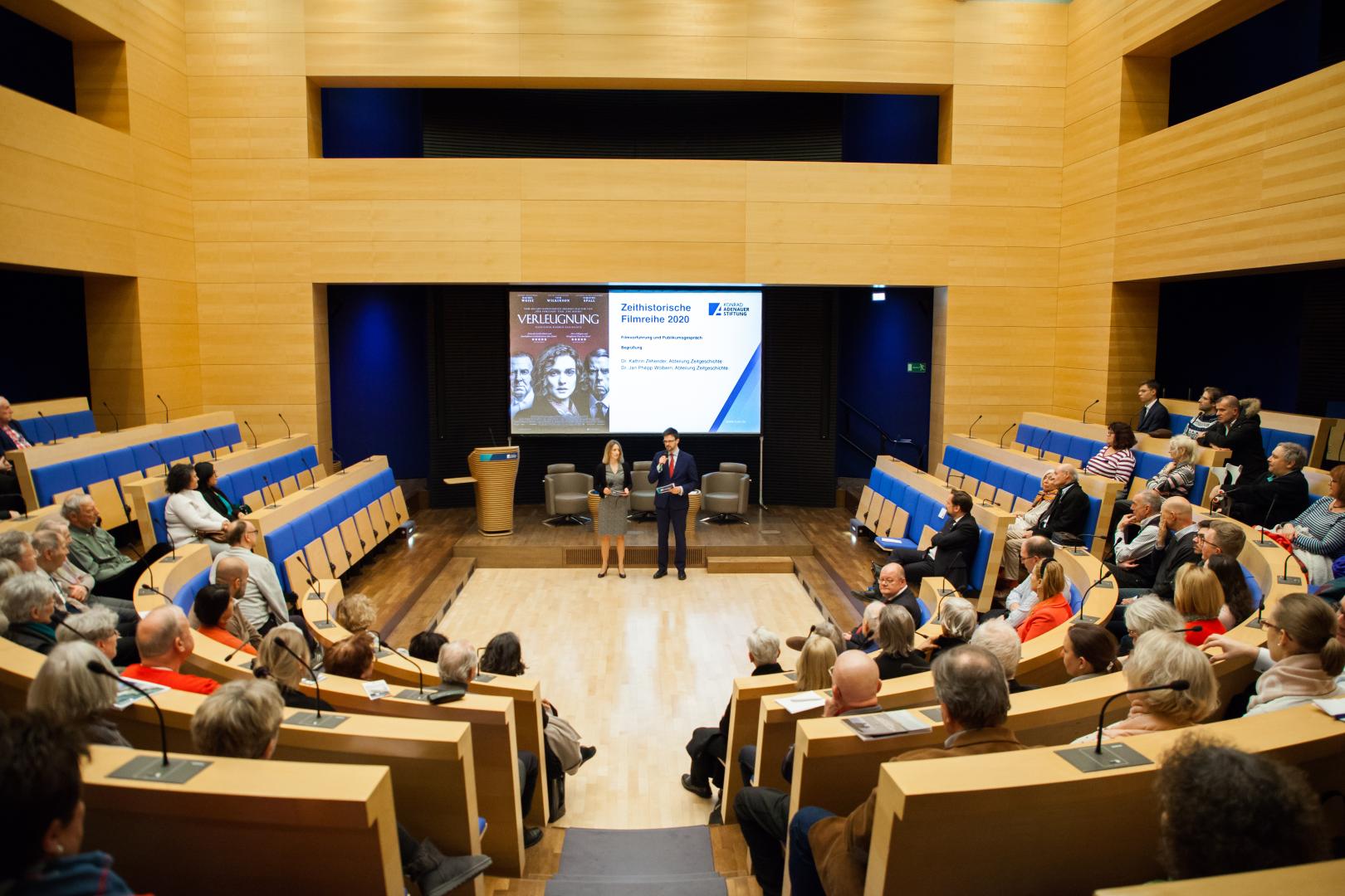 Zur Vorführung des Films „Verleugnung“ und dem anschließenden Nachgespräch im Rahmen der Zeithistorischen Filmreihe am Tag des Gedenkens an die Opfer des Nationalsozialismus begrüßten Dr. Kathrin Zehender und Dr. Jan Philipp Wölbern rund 140 Gäste im Forum der Akademie in Berlin. Der Film aus dem Jahr 2016/17 thematisiert die Verleumdungsklage des britischen Autors und Holocaust-Leugners David Irving gegen die US-amerikanische Professorin und Holocaust-Forscherin Deborah Lipstadt vor dem Britischen High Court in den 1990er Jahren. Lipstadt hatte Irving als „authentischen Holocaust-Leugner“ bezeichnet. Da im britischen Recht in diesen Fällen die Beweislast beim Beklagten liegt, befand sich Lipstadt in der absurden Lage, den Holocaust vor Gericht beweisen zu müssen.