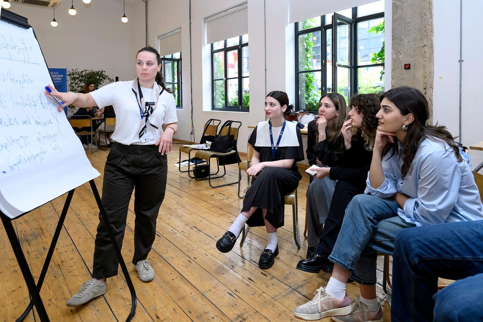 მოწვეულმა ექსპერტებმა ახალგაზრდებს გაუზიარეს საკუთარი ხედვები და გამოცდილება საქართველოს დემოკრატიული მმართველობის გამოწვევებსა და შესაძლებლობებზე, ხოლო მონაწილეებმა შეიმუშავეს სამოქალაქო ინიციატივების პროექტები, რომლებიც მიზნად ისახავს დემოკრატიული ღირებულებების გაძლიერებასა და საჯარო ანგარიშვალდებულების წახალისებას.