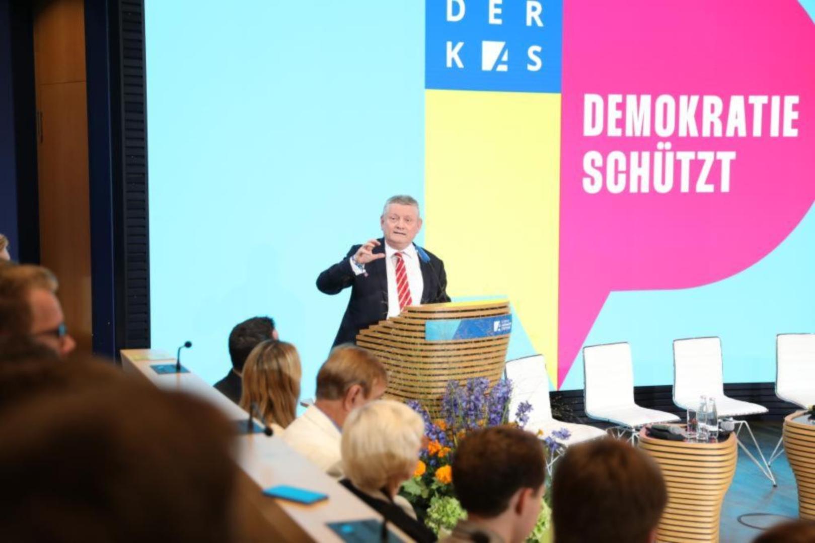 Am Jugendpolitiktag im Rahmen des Tag der KAS erlebten die Teilnehmerinnen und Teilnehmer spannende Diskussionen und Workshops. Die Veranstaltung, die unter dem Thema „Tatkraft statt Stimmungsmache" stand, wurde von Michael Thielen, Generalsekretär der KAS, eröffnet mit dem eindringlichen Hinweis, dass „Demokratie mehrfach erkämpft werden muss“. Er verwies auf die Herausforderungen, denen sich unsere Gesellschaft stellen muss. Ein Poetry Slam von Julian Heun sorgte für einen eindrücklichen und kreativen Einstieg in den Tag, bevor die Podiumsdiskussion unter dem Titel „Mit Zuversicht aus der Stimmungsdemokratie“ mit Serap Güler, Abgeordnete der CDU/CSU-Fraktion im Deutschen Bundestag, und dem ehemaligen slowakischen Ministerpräsidenten Eduard Heger startete. Güler betonte: „Die Politik hat das Vertrauen der Menschen verloren. Wenn die Menschen merken, dass sich nichts ändert und kein Konzept dahintersteht, ist die Enttäuschung umso größer.“