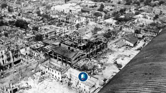Blick aus der Luft auf das zerstörte Berlin und das Brandenburger Tor, 1945. tormentor4555 / Wikimedia / CC BY-SA 3.0 / creativecommons.org/licenses/by-sa/3.0/deed.en