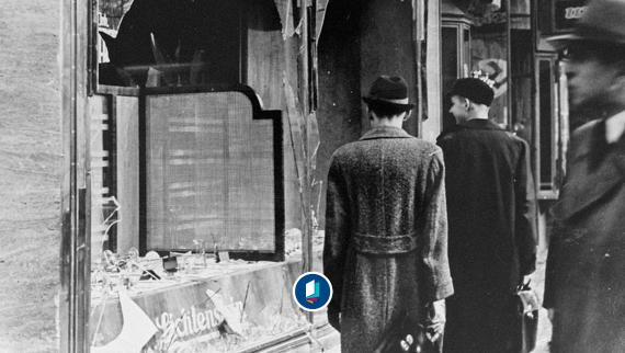 People passing a broken window of a Jewish shop, November 1938 akg-images / WHA / World History ArchWHAi