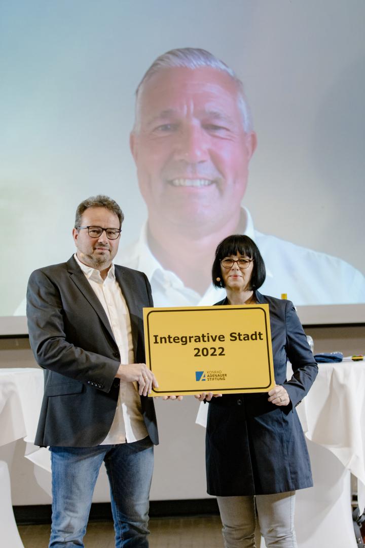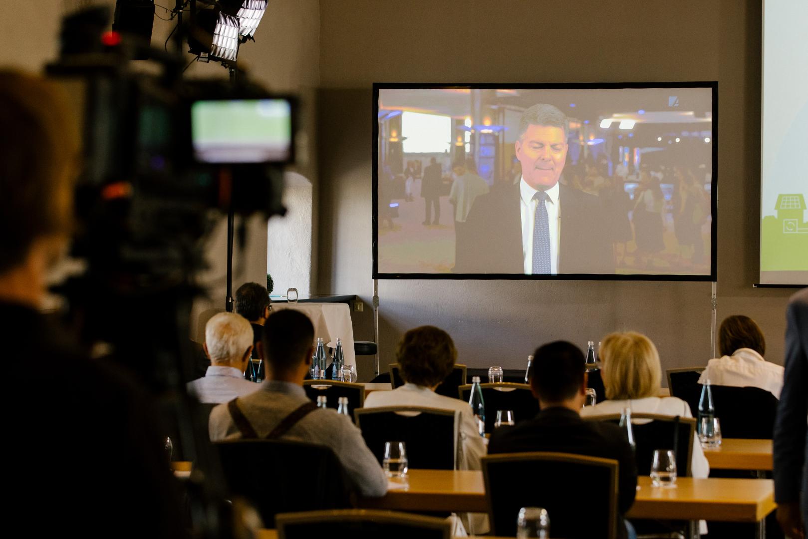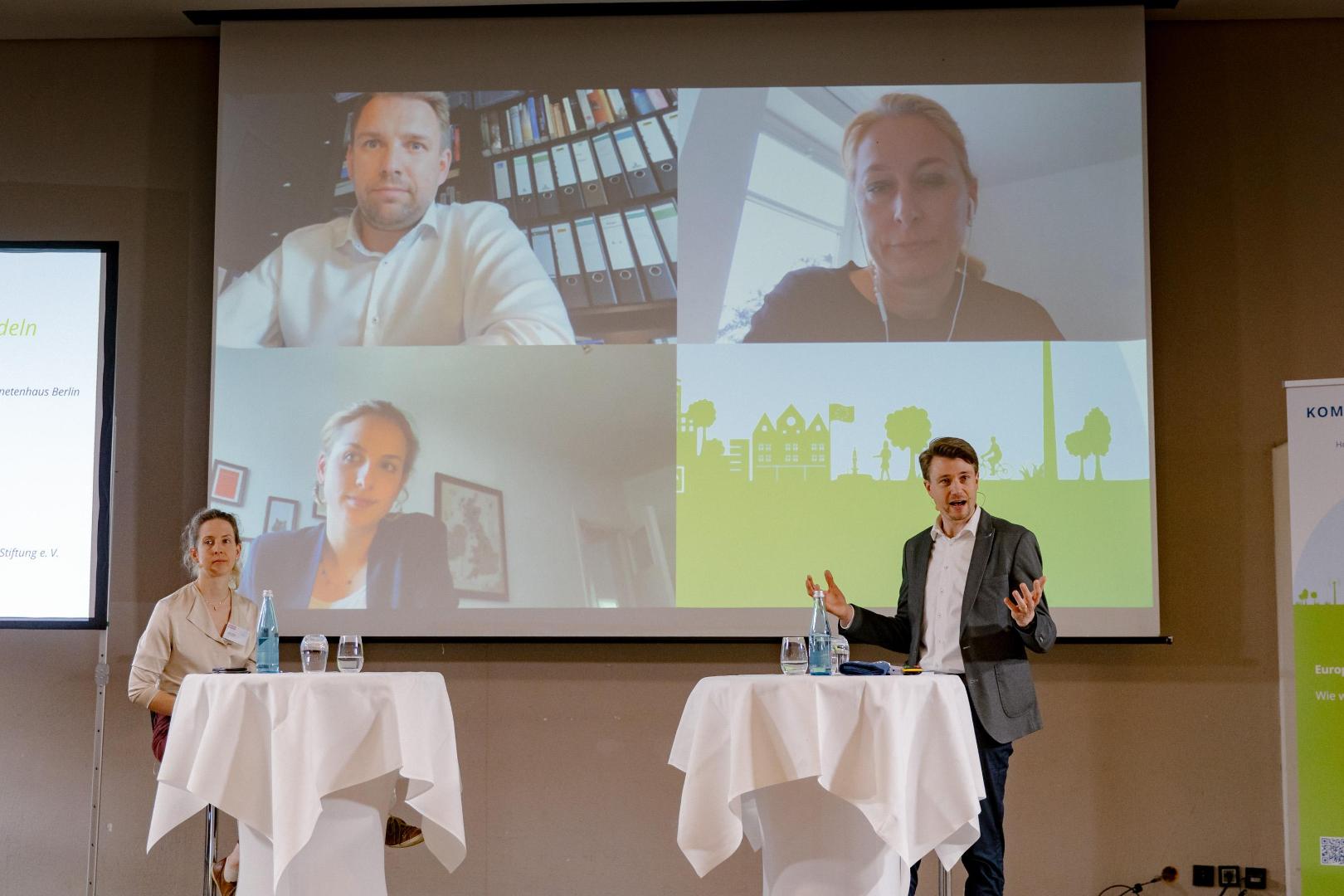 Nach der Verleihung des Preises „Integrative Kommune“ an die Verbandsgemeinde Wallmerod erläuterten in einer hybriden Podiumsdiskussion Wiebke Winter, Bundesvorstandsmitglied der CDU, Danny Freymark MdA, Dr. Christine Lemaitre, Geschäftsführender Vorstand der Deutschen Gesellschaft für Nachhaltiges Bauen und Judith Ottich von Architects for Future die Herausforderungen von kommunaler Stadtplanung und die Relevanz des Bausektors für die Erreichung der Klimaziele.