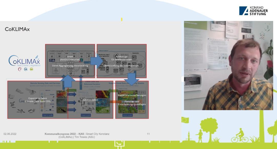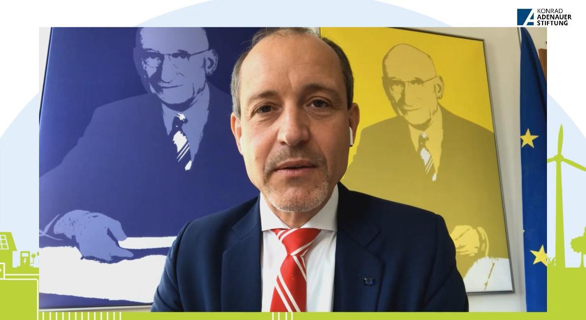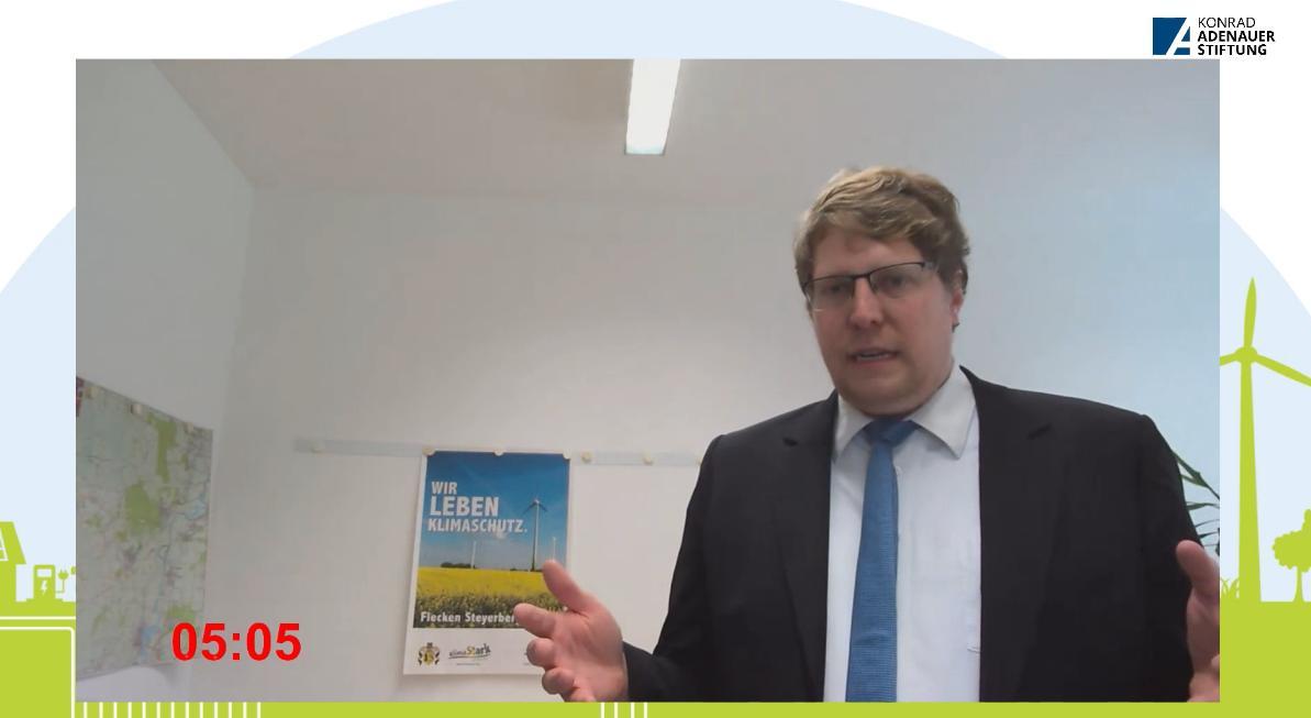 Nach Impulsen der beiden Schirmherren schaltete sich Jörg Wojahn, Leiter der Europäischen Kommission in Deutschland zu und ging u.a. auf unterschiedliche Förderprogramme der Europäischen Union im Rahmen des „European Green Deal“ ein. Im Rahmen des Formats „Adenauer Pitch“ stellten Gründer und Vertreterinnen von Klimainitiativen ihre Projekte vor. Beim „virtuellen Blick über den Tellerrand“ beleuchteten Kolleginnen und Kollegen aus Auslandsbüros der KAS in Lateinamerika, Asien und Algerien internationale Beispiele für erfolgreiche Klimapolitik.