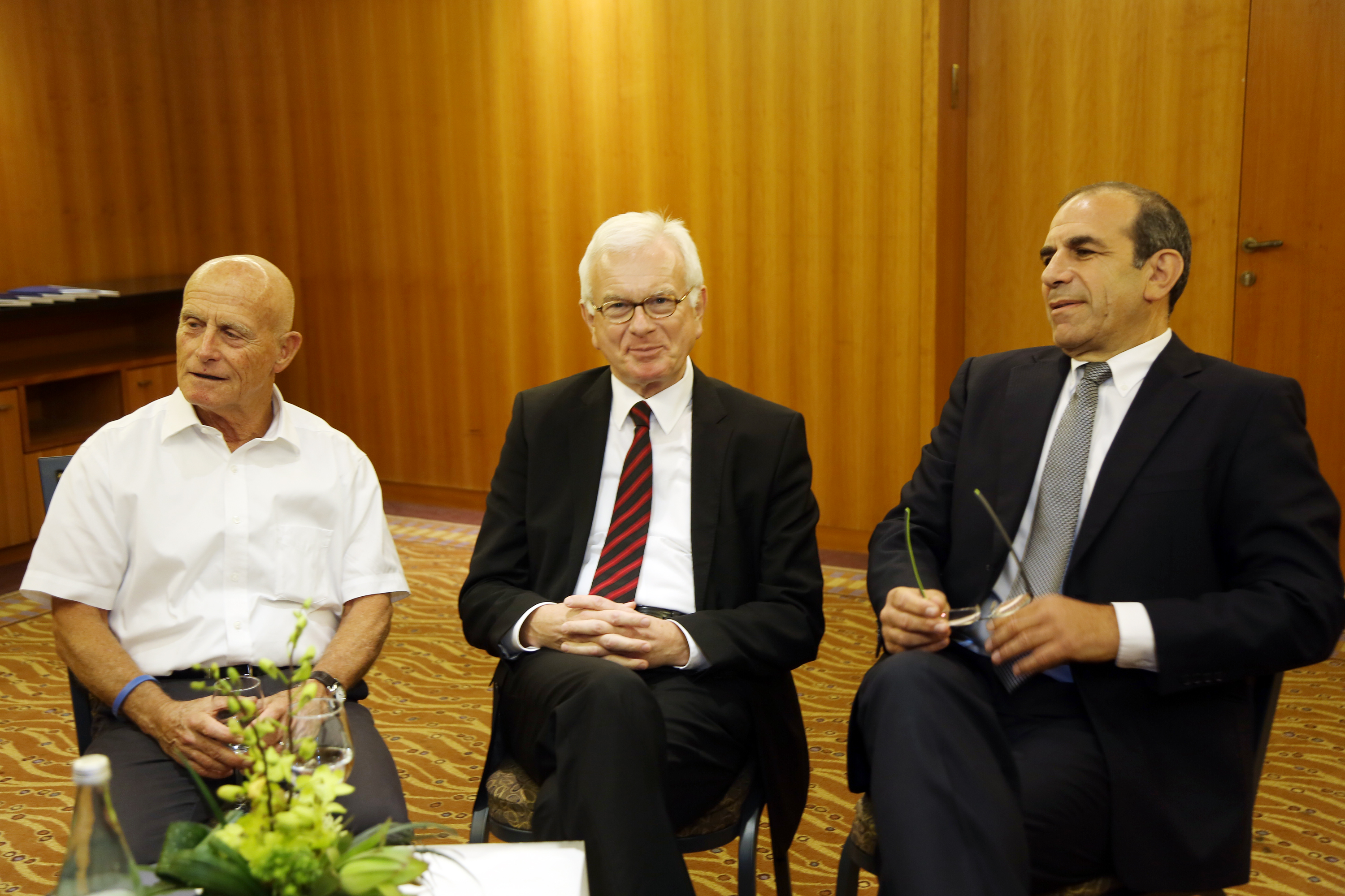 Dr. Hans-Gert Pöttering, Vorsitzender der Konrad-Adenauer-Stiftung mit Ami Ayalon (links) und Gilead Sher (rechts)