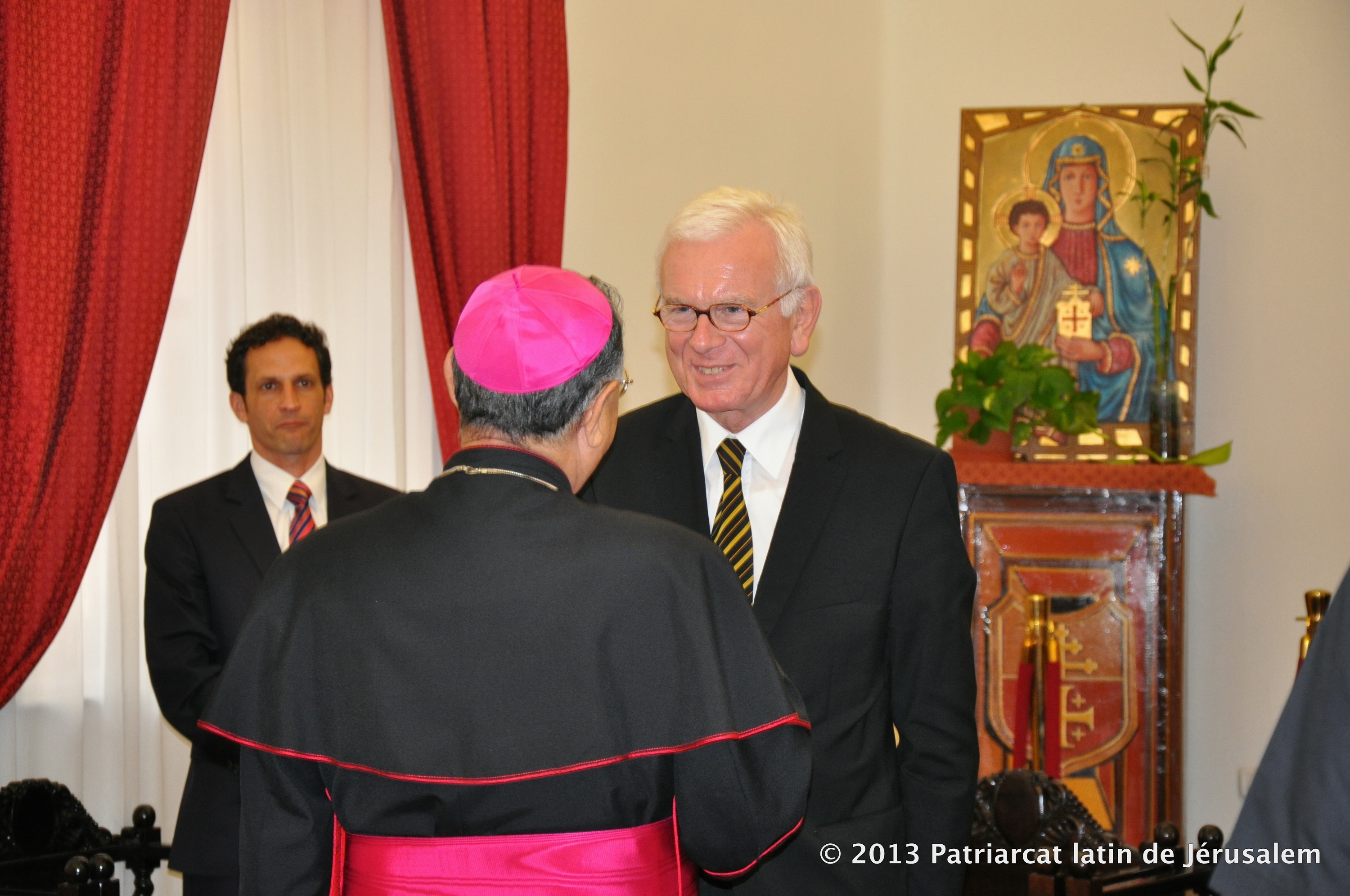 Michael Mertes, Leiter des Israel-Büros der Konrad-Adenauer-Stiftung mit dem Lateinischen Patriarchen in Jerusalem, Fouad Boutros Ibrahim Twal