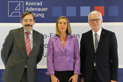 Am heutigen Donnerstag sprachen die Hohe Vertreterin der Europäischen Union für Außen- und Sicherheitspolitik und Vizepräsidentin der Europäischen Kommission, Federica Mogherini und der Präsident des Europäischen Parlaments a.D. und Vorsitzende der Konrad-Adenauer-Stiftung, Hans-Gert Pöttering, auf dem Symposium im historischen Festsaal der Provinz Limburg in Maastricht.