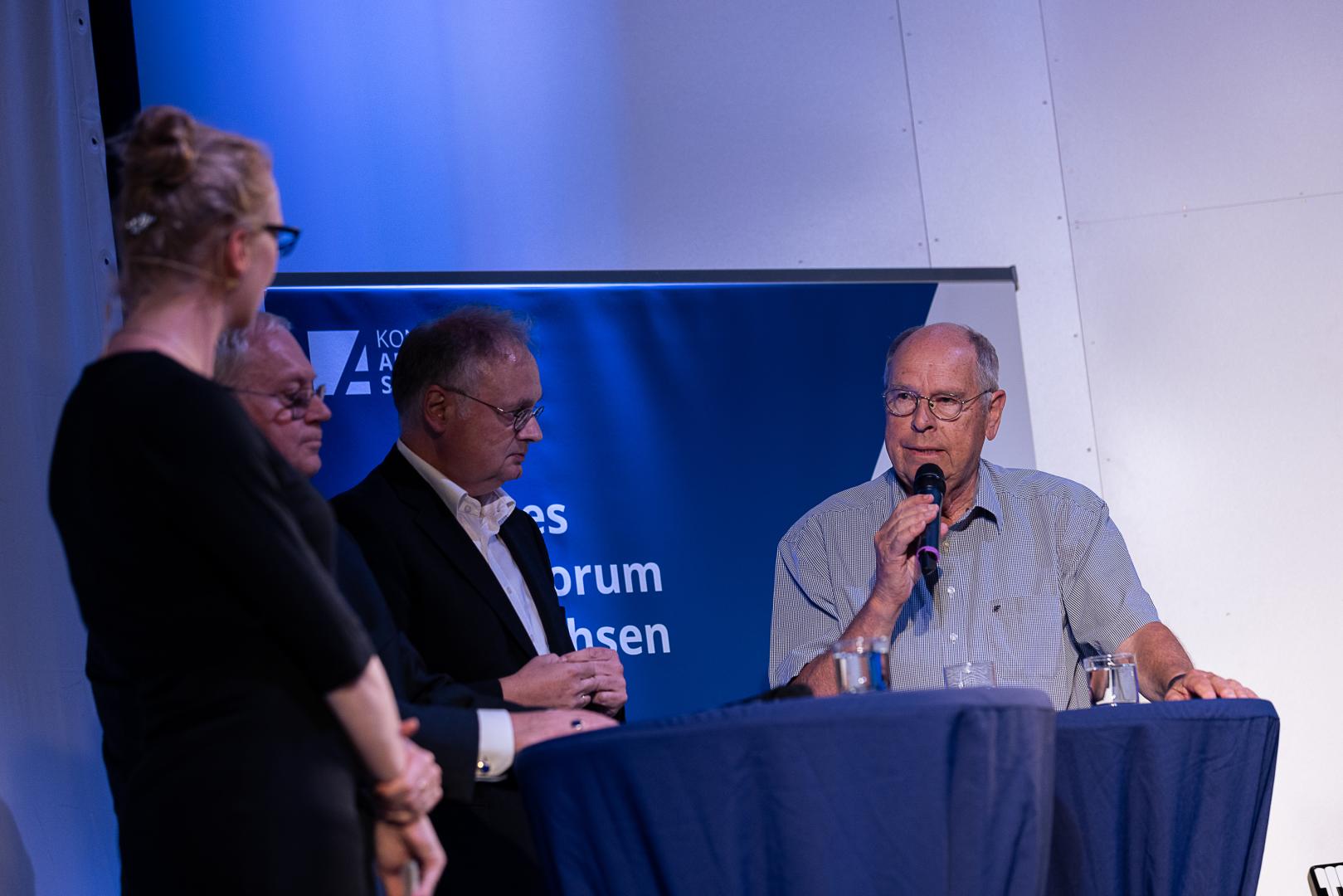 In einer Podiumsdiskussion befragte Moderatorin Isabel Link drei Zeitzeugen, die Hasselmann aus unterschiedlichen Zusammenhängen erlebt und ihn begleitet hatten. Der damalige Student Jochen-Konrad Fromme, später Bundestagsabgeordneter, lernte Hasselmann eher zufällig kennen – und geriet plötzlich als junger Mann in eine Zusammenkunft hochrangiger CDU-Funktionsträger. „Wenn er mit einem sprach, hatte man immer das Gefühl, dass er einen sehr ernst nahm und dass man ganz normal mit ihm reden konnte. Er strahlte Vertrauen und Warmherzigkeit aus“, erinnert sich Fromme. Hartwig Fischer, der 1986 CDU-Generalsekretär wurde, berichtet von einer „schwierigen Aufgabe“, die der CDU-Landeschef Hasselmann ihm damals gab: Fischer sollte einige Landtagsabgeordnete der CDU begleiten, ihnen Hinweise geben und schauen, ob sie ihren Aufgaben gewachsen sind. „Das hat er aber umsichtig und taktvoll getan – und später hat er selbst mit den Betroffenen gesprochen“, erläuterte Fischer. Wenn es um unangenehme Personalentscheidungen ging, habe für ihn die menschliche Seite immer eine große Rolle gespielt. Der Journalist und Historiker Klaus Wallbaum sagte, Hasselmann sei sicher auch – wie alle Spitzenpolitiker – zu Intrigen in der Lage gewesen. Aber das habe er immer so verstanden, dass niemand dabei persönlich verletzt oder herabgewürdigt werden durfte. Er habe nie aus Boshaftigkeit Menschen gegeneinander ausgespielt – und das sei der Grund, warum er bis heute so beliebt sei. Die Verlogenheit und Illoyalität des Politikbetriebs habe Hasselmann verletzt, er sei mit der Unaufrichtigkeit nicht gut zurechtgekommen. Auch das Gespann Albrecht-Hasselmann sei für Hasselmann nicht immer leicht gewesen. Denn es sei ja Albrecht gewesen, der den Takt bestimmte.