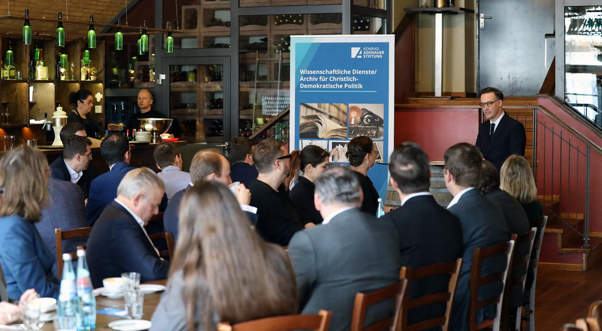 Es sei das besondere Verdienst der CDU, sagte Oppermann abschließend, in der politischen Kultur der Bundesrepublik Deutschland einen prowestlichen und prodemokratischen Liberalkonservatismus verwurzelt zu haben. Angesichts der AfD bestehe jedoch die Gefahr, dass der illiberale, ältere deutsche Konservatismus wieder erstarke. Insofern, so Oppermann, sei es die Aufgabe der Unionsparteien, „dafür zu sorgen, dass dieser Konservatismus nicht wieder die Oberhand gewinnt.“