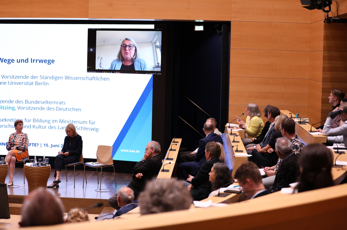 Der Generalsekretär der Konrad-Adenauer-Stiftung Michael Thielen eröffnete die Tagung und wies auf die Dringlichkeit des Themas hin, da neben den Perspektiven der Bildungsrepublik Deutschland die Bildungs- und damit Lebenschancen junger Menschen akut betroffen sind. DL-Präsident Heinz-Peter Meidinger beschrieb in seiner Begrüßung den Lehrkräftemangel als die zentrale, größte und alle anderen Themen überlagernde Herausforderung der Schulpolitik in Deutschland – er liege wie eine bleierne Decke über allen anderen Problemen der Schul-und Bildungspolitik, Stundenausfall und Unterrichtskürzungen bedrohten längst nicht nur mehr Zusatzangebote, sondern den gesamten Pflichtunterricht.