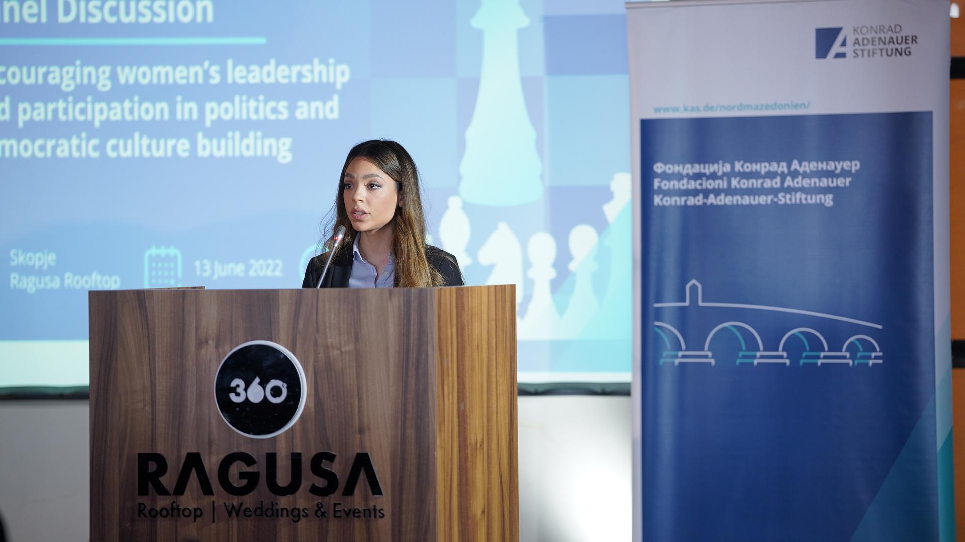 Во своето воведно обраќање, Даниел Браун, официјалниот претставник на фондација Конрад Аденауер истакна: „Важно е жените како и сите останати граѓани да бидат застапени во политиката како и во сите општествени сфери на раководни позиции, не само поради рамноправната застапеност, туку и поради поинаквите перспективи и погледи кои мажите и жените ги имаат на тие водечки позиции. Во Германија има многу повеќе жени на високи позиции, а како пример ја земаме канцеларката Меркел, но тоа не е репрезентативно за целото општество, на оваа тема треба многу да се стори. Во Европа и Балканот ситуацијата е слична“, истакна тој.