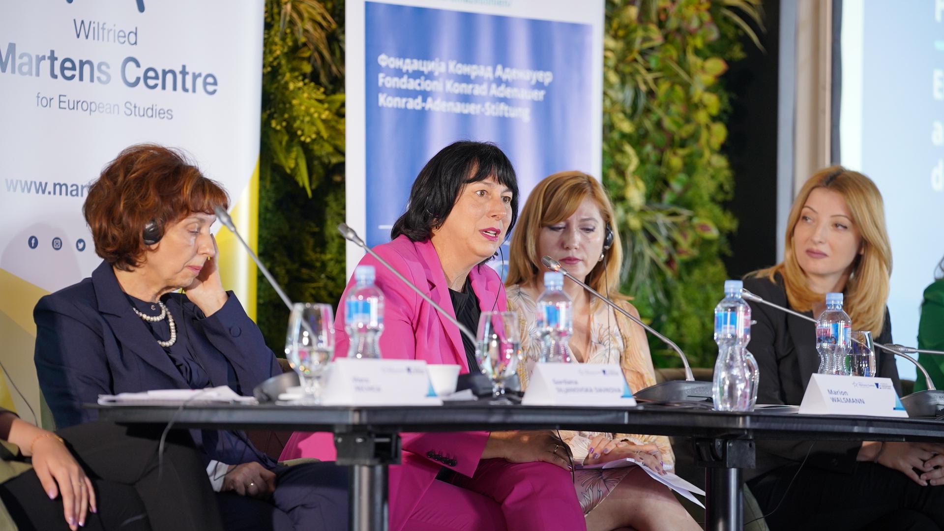 „Мора да постои еднаква застапеност, до сега гледаме дека застапеноста на жените во политиката е помала, бидејќи тие не се осмелуваат да влезат, а тоа е важно за да имаме едно здраво демократско општество. Политичките партии треба да ги охрабруваат жените да бидат на такви високи функции, а особено младите би биле заинтересирани за такво нешто„ додаде Елефтерија Каци од Центарот за европски студии Вилфред Мартенс во нејзиното поздравно обаќање.