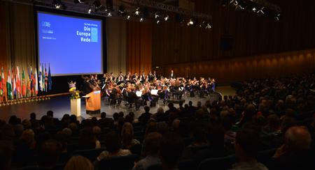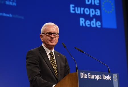 Die Europa-Rede der Stiftung Zukunft Berlin, Robert Bosch Stiftung und Konrad-Adenauer-Stiftung, wird traditionell am für Deutschland und Europa so geschichtsträchtigen 9. November gehalten. Neben seinen Ausführungen zu aktuellen Themen nutzte Schulz die Rede zur Erinnerung an die friedliche Revolution. „Der 9. November 1989 ist ein Glückstag, weil die Freiheit gesiegt hat“, sagte Schulz. Dass vor 25 Jahren Abschottung und Entmündigung zu Ende waren und der Kalte Krieg überwunden werden konnte, sei ein Verdienst der Bürgerbewegungen in der DDR genauso wie in Polen, Ungarn, Tschechien und vielen anderen Staaten. Schulz würdigte in diesem Zusammenhang auch Helmut Kohl. Die Wiedervereinigung sei „nicht allein aber in ganz besonderer Weise“ das Verdienst des Altkanzlers und dessen historischer Beitrag.