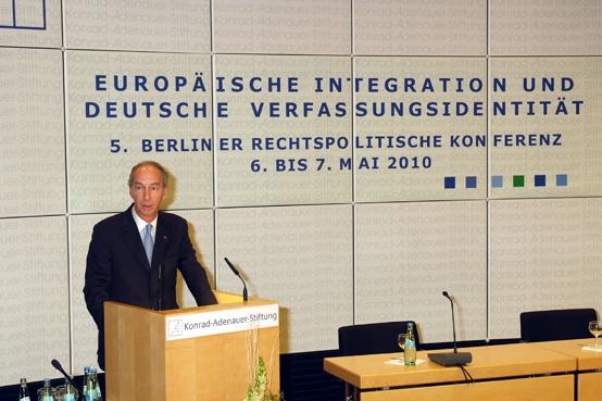 Die Mitgliedsstaaten der Europäischen Union – alte wie neue – hätten aus politischen Eigeninteressen wiederholt gegen gesetztes Recht verstoßen oder dieses zumindest nicht richtig eingehalten, wie im Falle des Stabilitätspaktes. Die Griechenlandkrise offenbare die Notwendigkeit einer möglichst schnell umzusetzenden Reform des Währungssystems. Diese müsse Regeln für zumindest einen zeitweiligen Austritt eines Mitgliedsstaates aus der Währungsunion enthalten. Aber auch ein Ausschluss sollte möglich sein. In der anschließenden Diskussion wurden die Reichweite des Lissabon-Urteils des Bundesverfassungsgerichts und die Rolle der Bundesländer erörtert. Kontrovers war die Frage, ob die strikte Beachtung des Rechts das europäische Projekt voranbringt oder zum Scheitern führt.