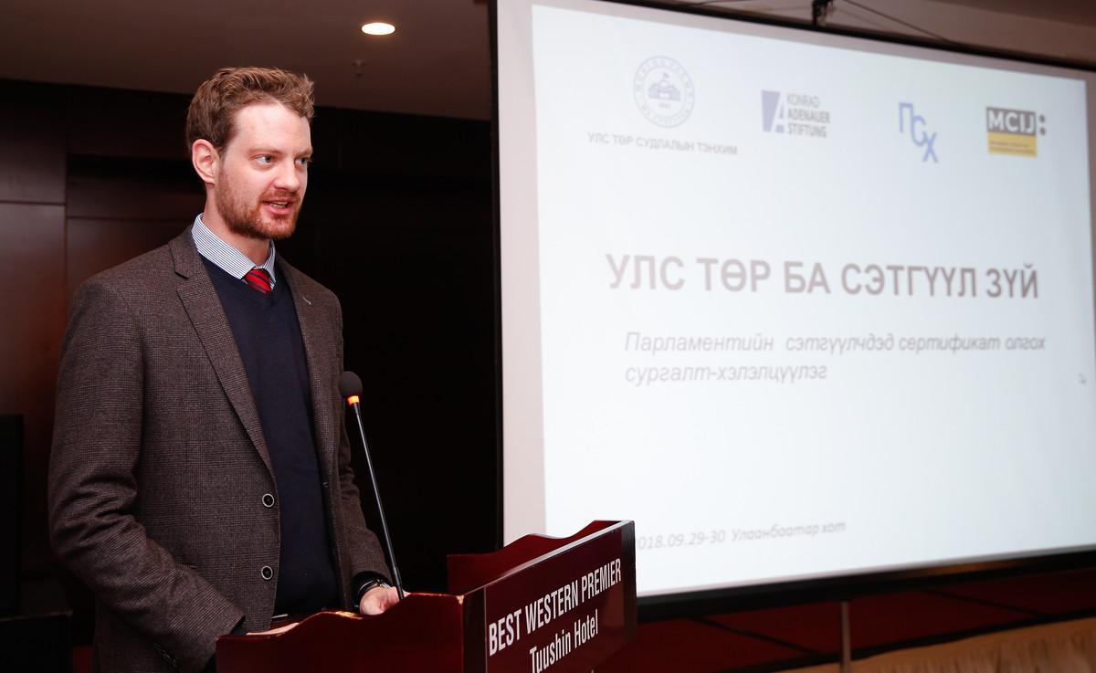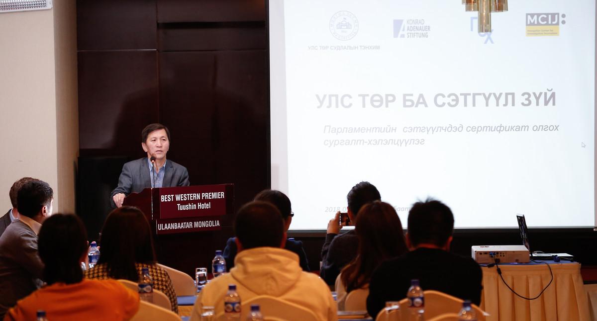 Ийм ч үүднээс Конрад-Аденауэр-Сан, МУИС-ийн Улс төр судлалын тэнхим, Монголын парламентын сэтгүүлчдийн холбоо болон Эрэн сурвалжлах сэтгүүл зүйн төв хамтран парламентын сэтгүүлчдэд зориулан 09 дүгээр сарын 29-30-ны өдрүүдэд УЛС ТӨР ба СЭТГҮҮЛ ЗҮЙ сэдвээр сургалт, хэлэлцүүлэг зохион байгууллаа.