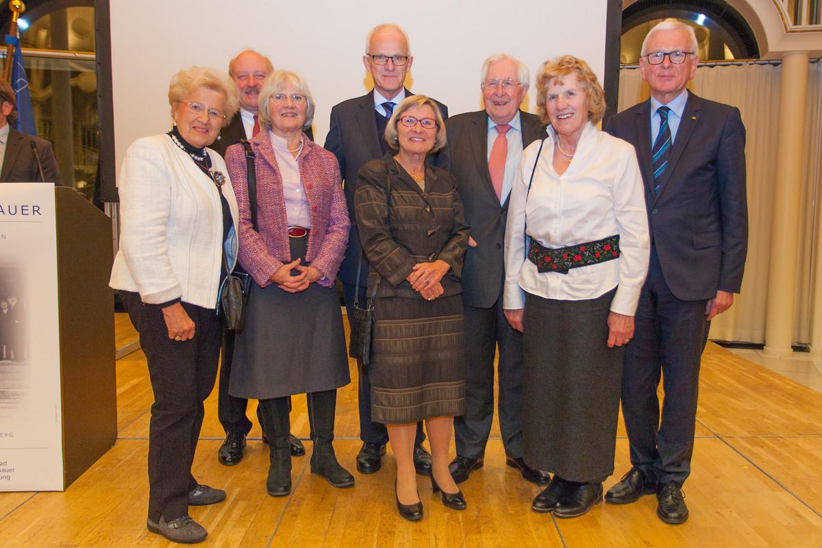 Die bestehenden Herausforderungen – z.B. in der Integrations- und Europapolitik – anerkannten alle Redner. Doch plädierten sie dafür, dass uns der Mut nicht verlassen dürfe. Sehr eindringlich appellierte Vogel: Wir können doch nicht den Mut Adenauers so sehr bewundern und uns dann selbst fragen, ob es Sinn macht weiterzumachen. Mehr Gelassenheit und Zuversicht müssten unser Handeln bestimmen. Vogel hob hervor, Europa durchlebe nicht die erste Krise; „aus Krisen müssen Wendepunkte und dürfen nicht Schlusspunkte werden.“ Er machte insbesondere der jungen Generation Mut und führte eindringlich vor Augen, wie Adenauer aus den Trümmern des Zweiten Weltkriegs die erfolgreiche Bundesrepublik Deutschland formte, wie er Demokratie, Soziale Marktwirtschaft und soziale Sicherungssysteme durchsetzte, Versöhnung und Rückkehr in die westliche Werte- und internationale Staatengemeinschaft erreichte, die Gefahr des Kommunismus bannte. Es gelte, den Jüngeren Mut zu machen, Hand anzulegen, und er rief ihnen im Sinne Adenauers den Satz zu: Wenn einer glaubt, man ist am Ende, so muss man erst anfangen. Konrad Adenauer war nicht nur Bundeskanzler, er war auch Parteivorsitzender. Dieser Aufbau einer überkonfessionellen Volkspartei neuen Typs war eine weitere außerordentliche Leistung. Vorbei die Zeit der geballten Faust früherer klassenkämpferischer Parteien, die ausgestreckte Hand sollte Zeichen der neuen Union sein.