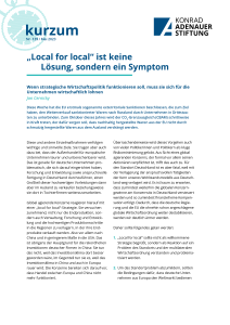„Local for local“ sollte nicht als willkommene Strategie begrüßt, sondern als Reaktion auf ein Problem des Standorts und der multilateralen Wirtschaftsordnung verstanden und problematisiert werden.