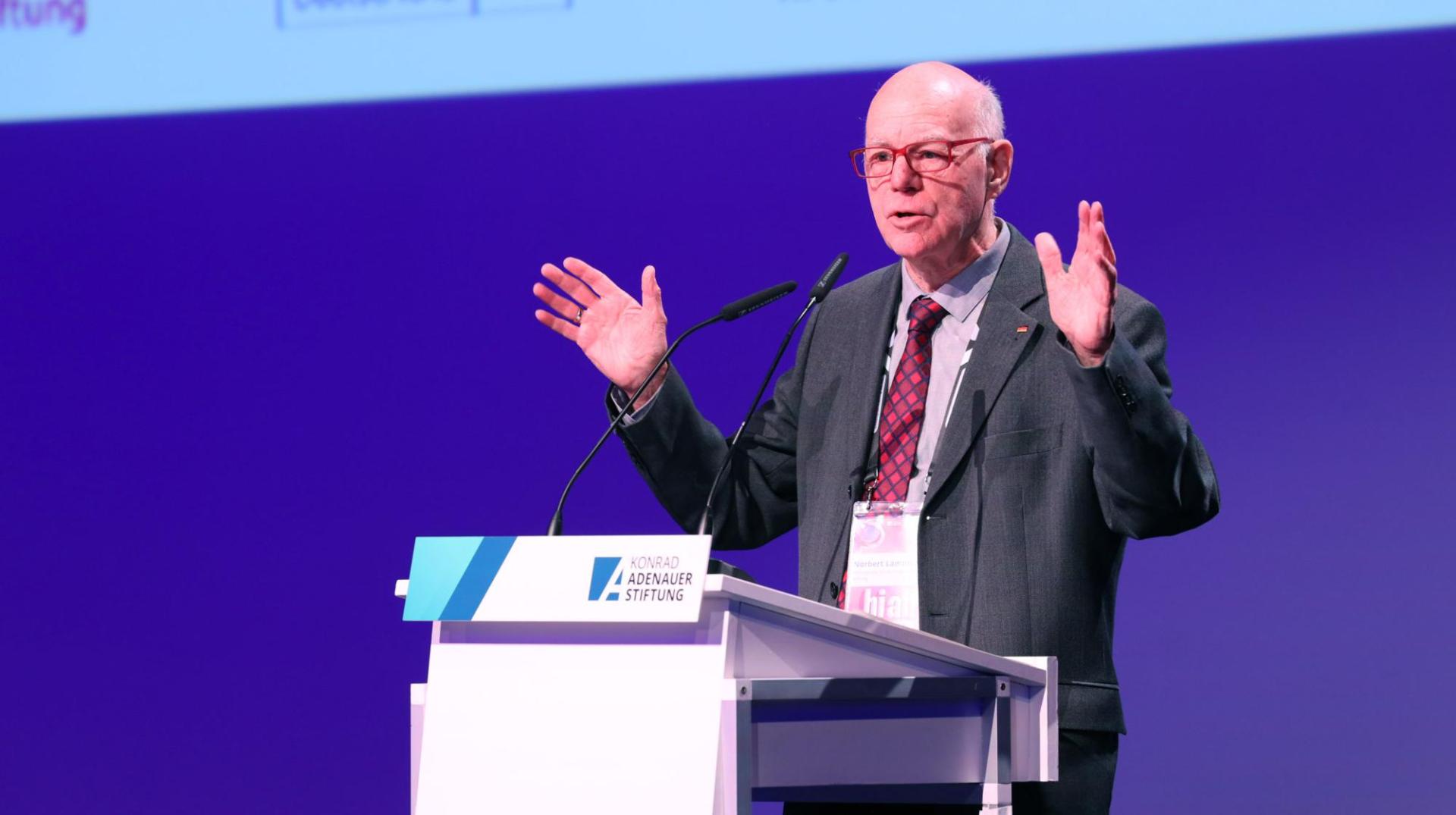 Ein gut gelaunter Konrad Adenauer (KI) begrüßte unsere Gäste im Kosmos in Berlin. Er gab das Wort, in guter politischer Manier, an unseren Vorsitzenden Norbert Lammert ab: "Möglicherweise hat niemand die Rundumkompetenz, um all die Aspekte, die mit diesem Thema sowohl technisch, politisch, sozial wie ökonomisch verbunden sind, vollends abzudecken. Genau das wollen wir aber versuchen“, eröffnet Herr Lammert unseren KI-Kongress.