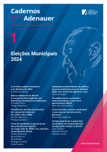 Este número da série Cadernos Adenauer é composto por oito capítulos, dedicados aos seguintes tópicos: o cenário político brasileiro e as eleições de 2024, a questão das sobras eleitorais e seus impactos nas unidades da Federação, o financiamento de campanhas eleitorais no contexto das eleições deste ano, a paradiplomacia, os consórcios municipais e uma nova governança pública, a crise de equidade na governança das plataformas digitais e suas implicações para o pleito de outubro, os desafios da representatividade em âmbito local englobando as perspectivas para as eleições, com recorte de raça e gênero, a crise climática, as eleições locais e o que se pode esperar dos planos de governos neste aspecto, e o papel que cabe aos municípios na universalização da educação cidadã no Brasil.