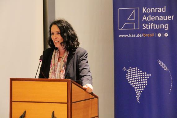 Quando estava sendo preparada a visita da Deputada Elisabeth Winkelmeier-Becker, membro da União Democrata Cristã (CDU), ainda não era possível imaginar que grau de atualidade iriam assumir os temas principais previstos para a sua viagem ao Brasil, programada para maio de 2016. Atuando desde 2005 no Parlamento Alemão, a Deputada é portavoz da bancada da União Democrata Cristã (CDU) e da União Social Cristã (CSU) tanto na área de política legislativa quanto na de direitos do consumidor. Por conseguinte, o papel da Justiça e a importância do Estado de Direito deram a tônica à sua visita no Brasil, organizada pelo Escritório da Fundação Konrad Adenauer no Rio de Janeiro. Entre os dias 16 e 18 de maio, a deputada participou de eventos da fundação e pôde trocar ideias com diversos especialistas da política e da justiça, das universidades e representantes da sociedade civil. Justamente uma semana antes de sua visita, o processo de impeachment da presidente Dilma Rousseff (PT) alcançara, até então, o cume no tocante à suspensão temporária da mandatária, de modo que a viagem da deputada foi marcada por especulações e anúncios envolvendo a formação do novo governo a cargo do presidente-interino Michel Temer (PSDB), que antes ocupava o cargo de vice-presidente de Dilma Rousseff. Além disso, estimativas publicadas pouco tempo antes da visita mostravam que a economia brasileira deverá encolher 4%, após já ter sofrido uma estagnação no ano anterior. Em meio a tantas turbulências geradas pela crise econômica e política, a deputada pôde observar de perto a política de um país emergente em plena convulsão, mas dotado não apenas de autoconfiança, como também de autocrítica.